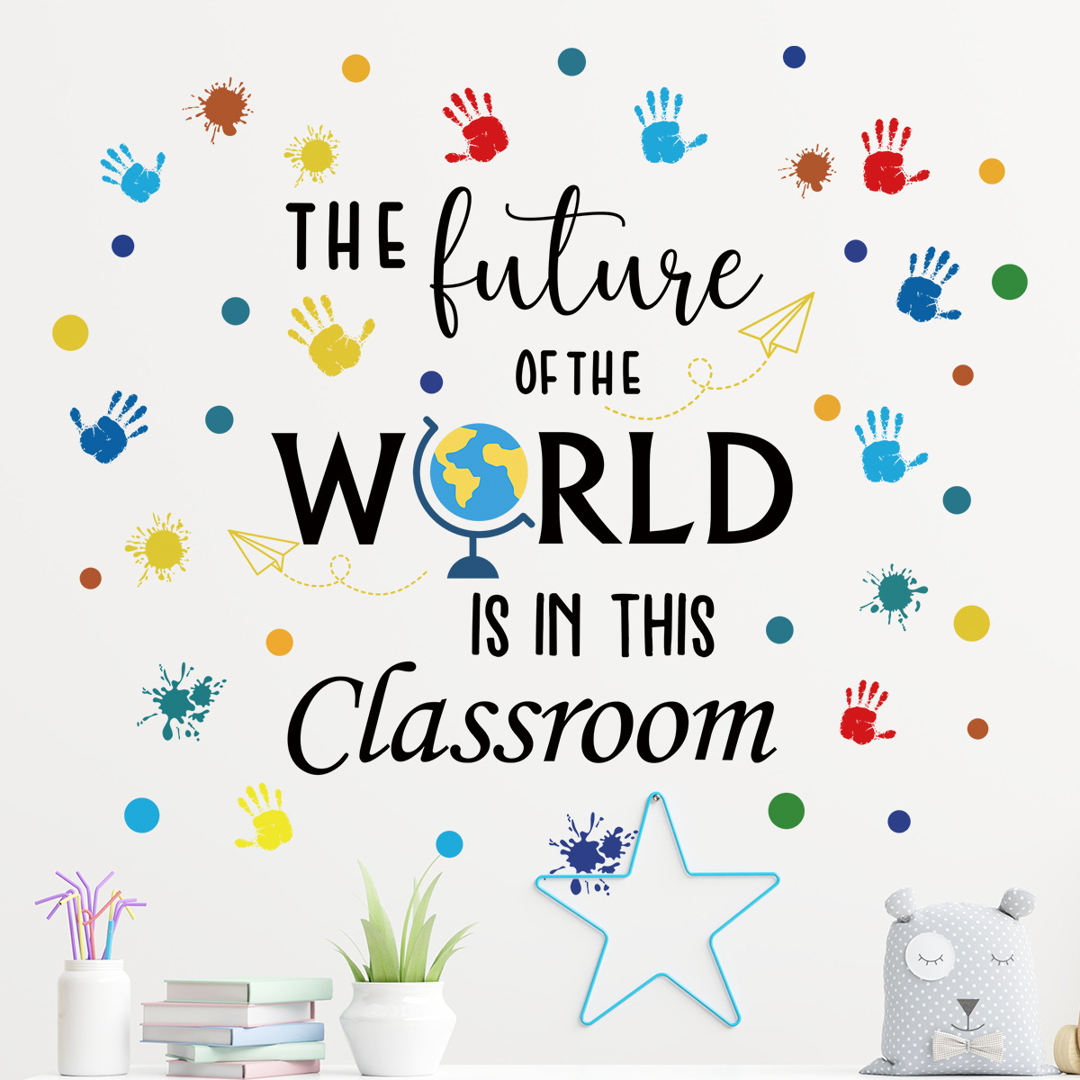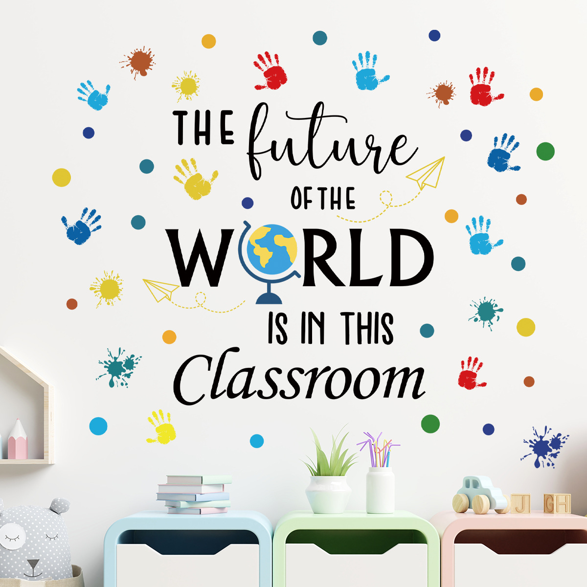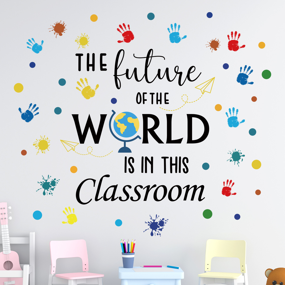 어린이 재미 영어 낙서 자기 접착 벽 스티커 유치원 교실 배경 벽 어린이 방 장식 스티커 BR0296E
