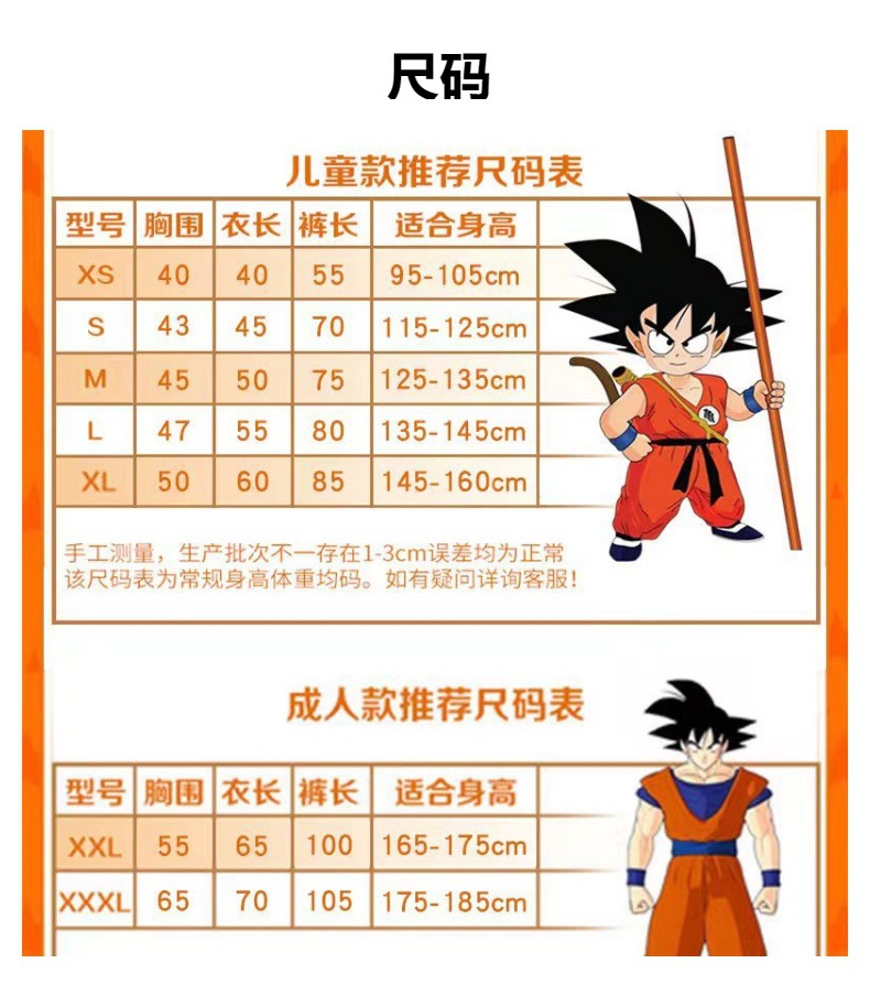 할로윈 남성 애니메이션 드래곤볼 의상 어린이 여성 손오공 코스프레 의상 공연용 크로스보더 세트스토어 가기