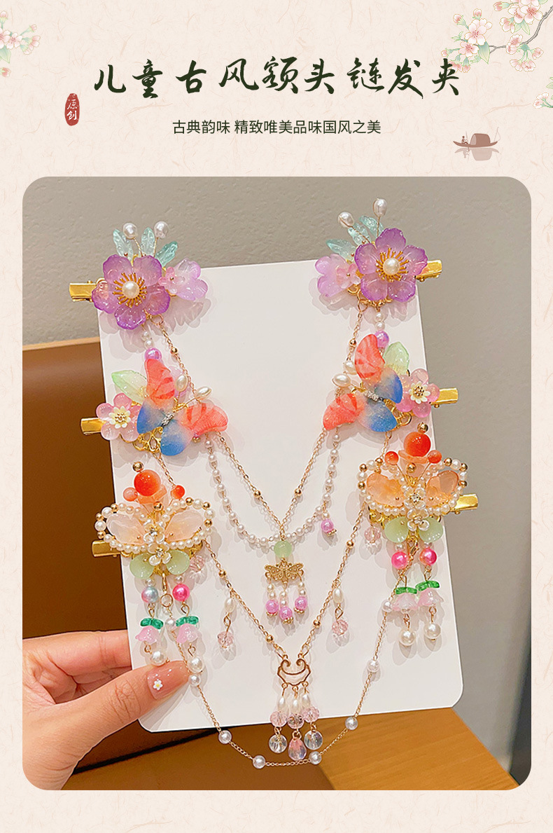 꽃 술 이마 체인 소녀 골동품 헤어 액세서리 어린이 한후 헤어핀 어린 소녀의 눈썹 체인 헤어핀 헤드웨어