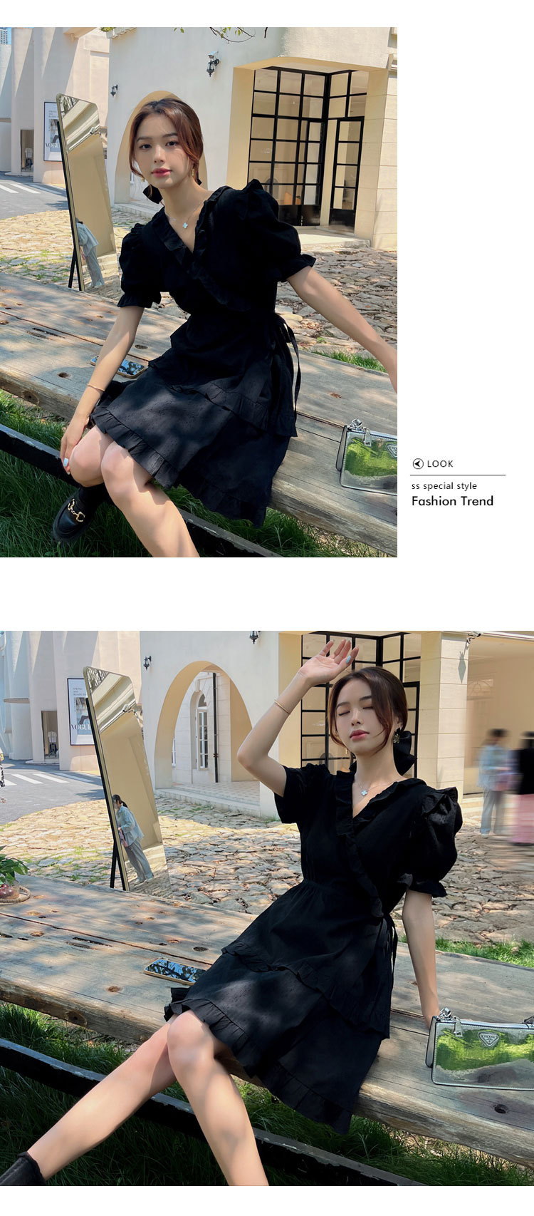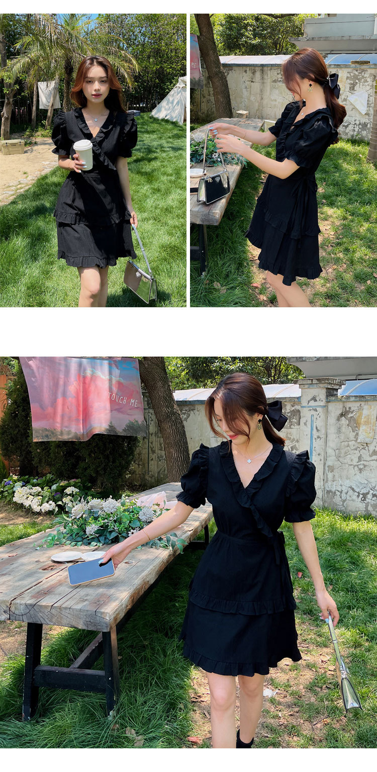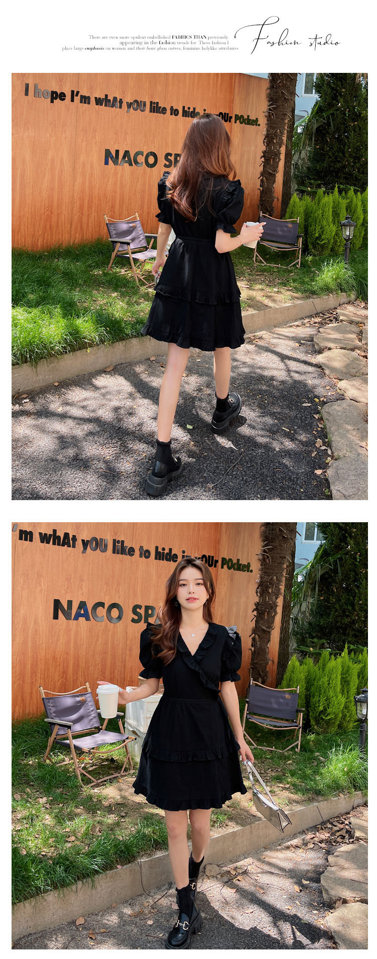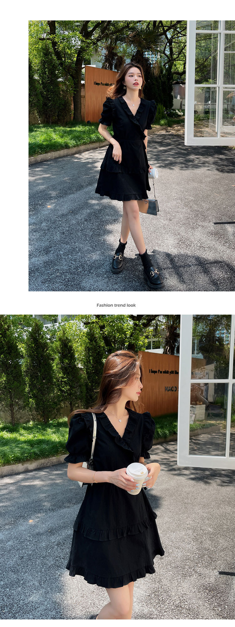 프랑스 V 넥 블랙 원피스 여성 2024 봄과 여름 새로운 디자인 센스 틈새 우아한 헵번 스타일 작은 검은 원피스스토어 가기