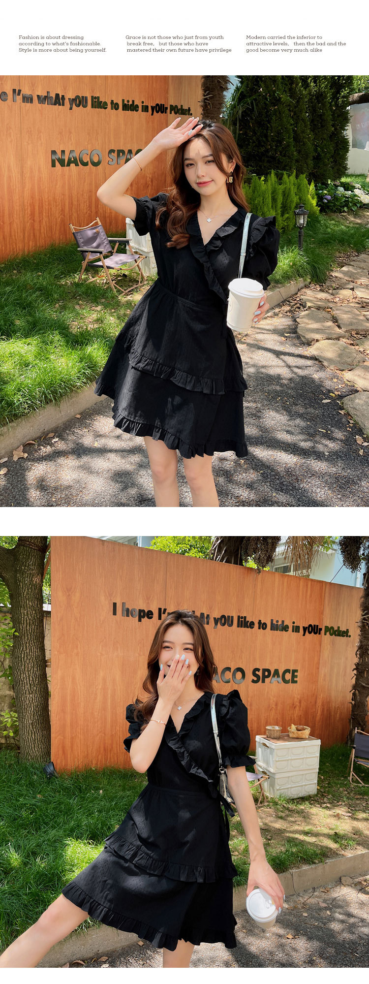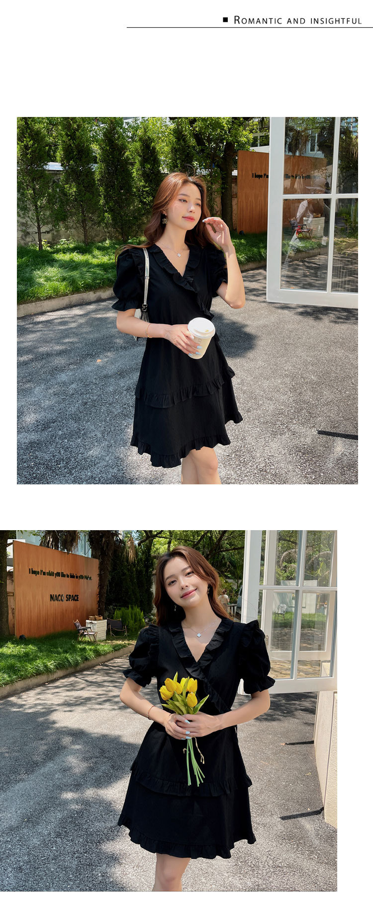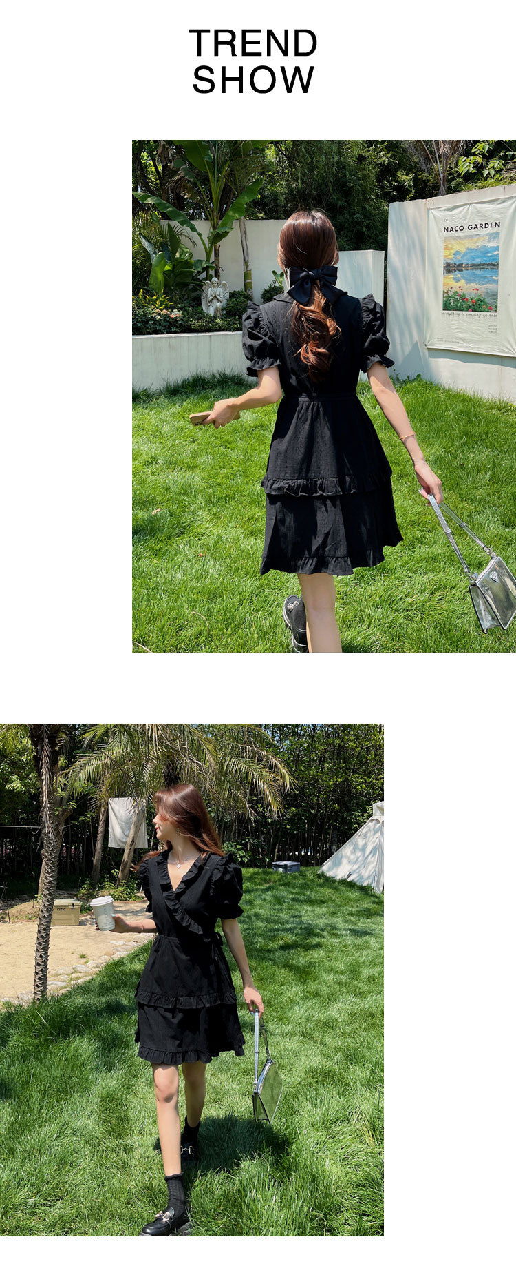 프랑스 V 넥 블랙 원피스 여성 2024 봄과 여름 새로운 디자인 센스 틈새 우아한 헵번 스타일 작은 검은 원피스스토어 가기