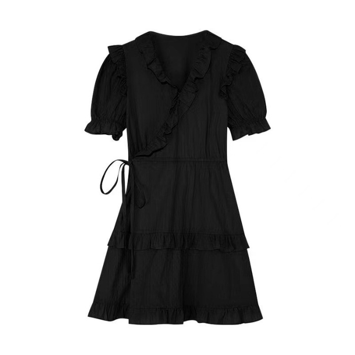 프랑스 V 넥 블랙 원피스 여성 2024 봄과 여름 새로운 디자인 센스 틈새 우아한 헵번 스타일 작은 검은 원피스