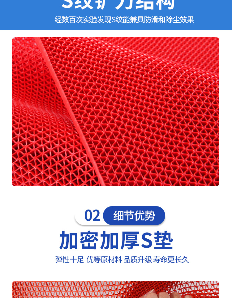 S 형 중공 메쉬 매트 미끄럼 방지 카펫 PVC 플라스틱 방수 욕실 수영장 주방 매트 엄격