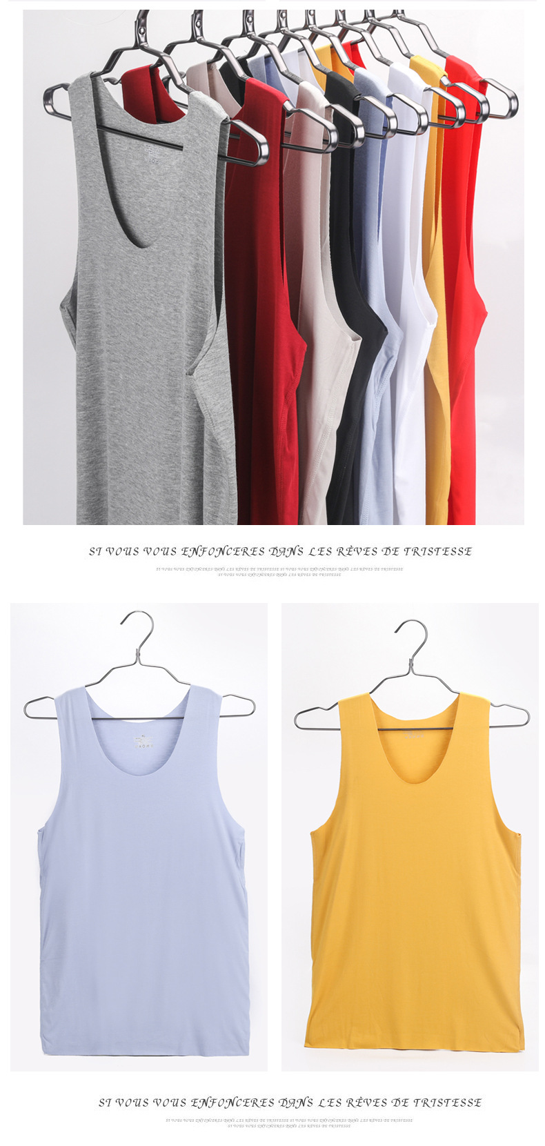 남자 조끼 모달 트레이스 남자 티셔츠 여름 얇은 통기성 피트니스 올 매치 라운드 넥 웨이스트 코트