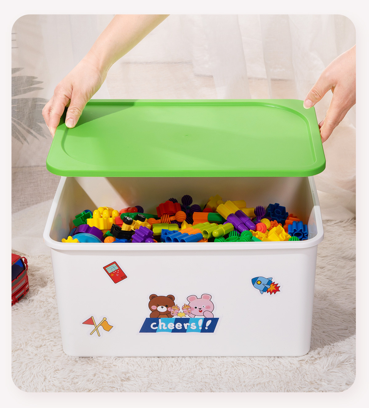 • 녹색 커버 건물 블록 장난감 상자 [휠]