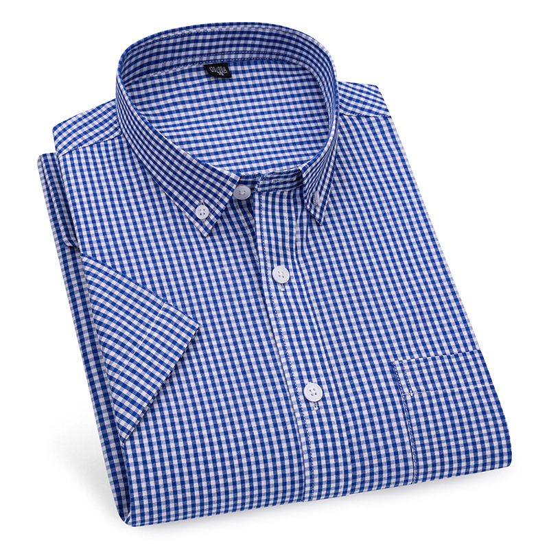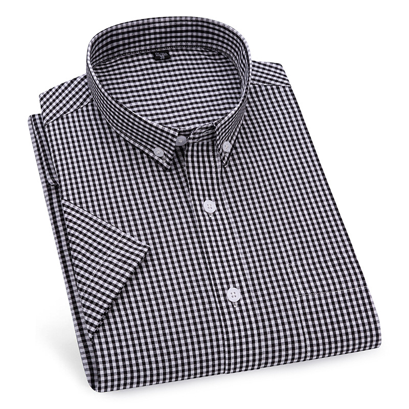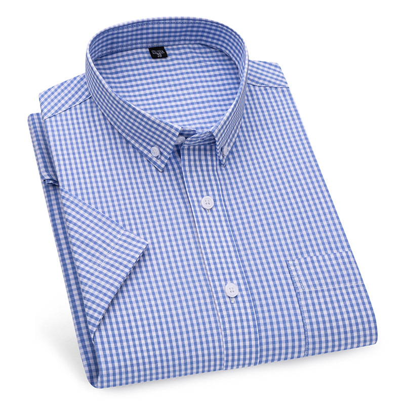 새로운 격자 무늬 반팔 셔츠 남자 캐주얼 비즈니스 옷깃 남자의 여름 얇은 간단한 반소매 탑 다림질 무료