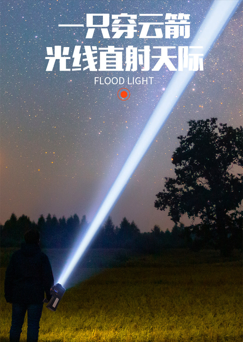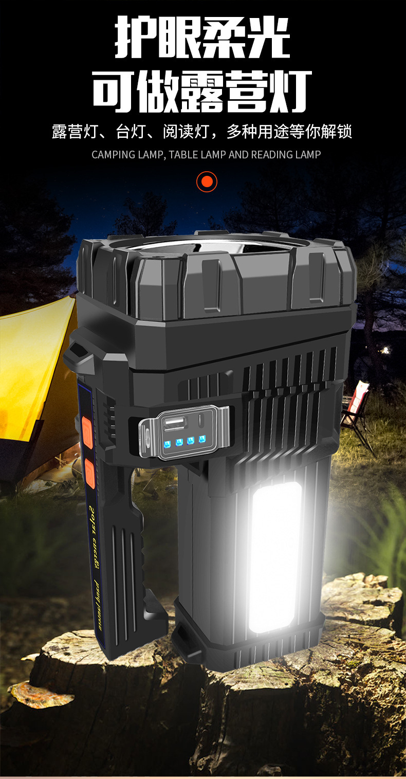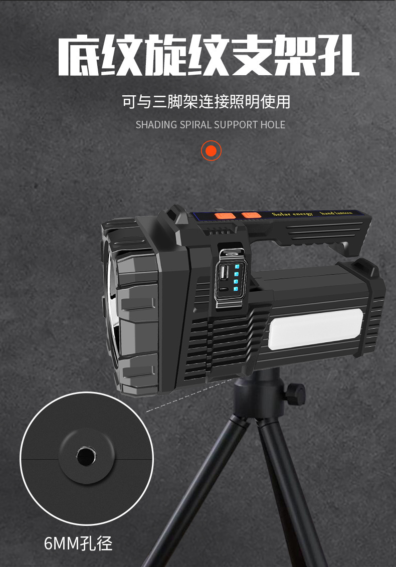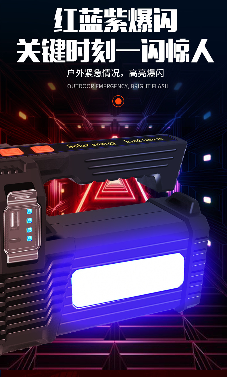 국경 간 새로운 야외 강한 빛 고출력 조명 손전등 다기능 빨간색과 파란색 LED 탐조등 비상 순찰 등
