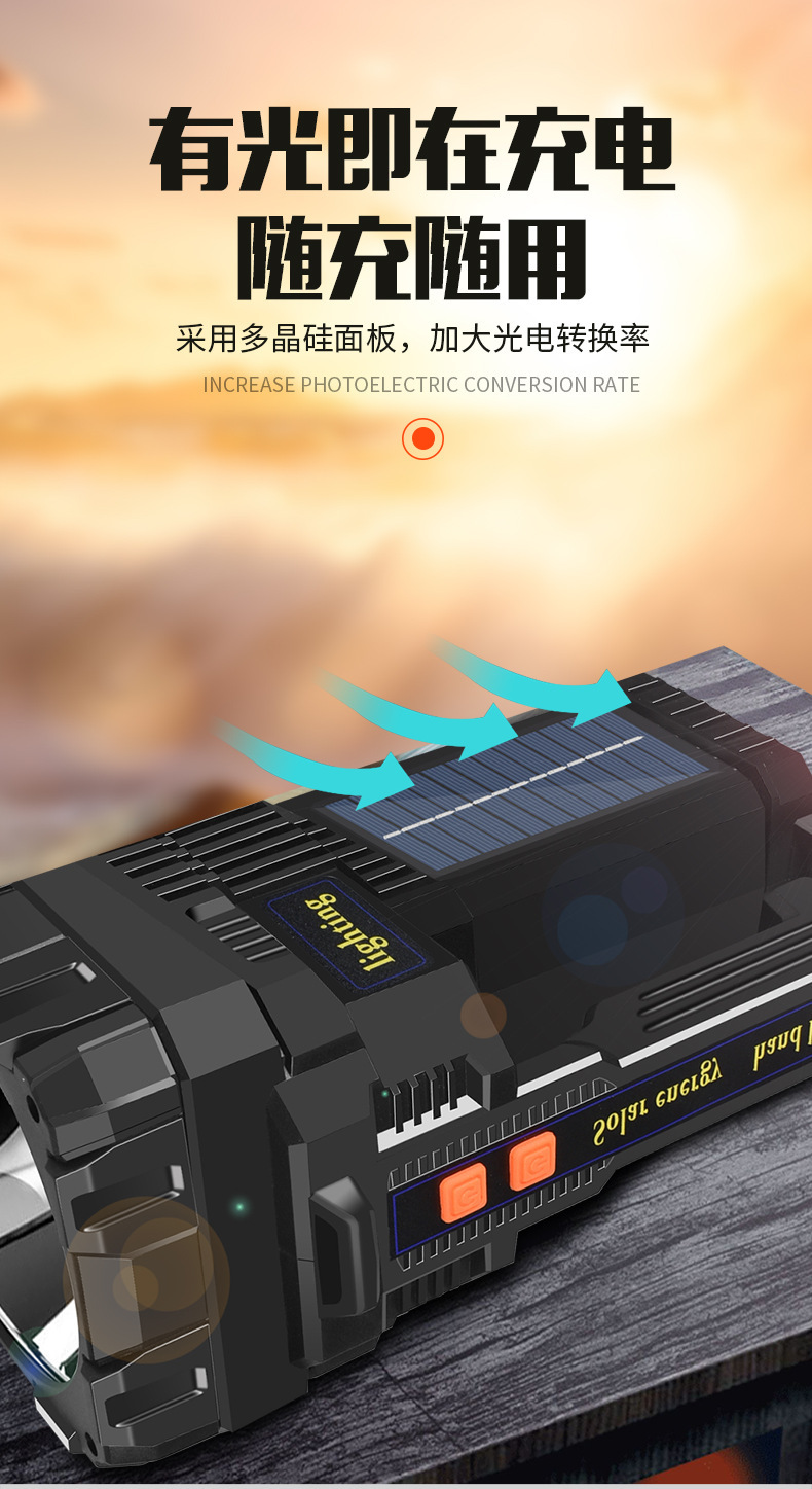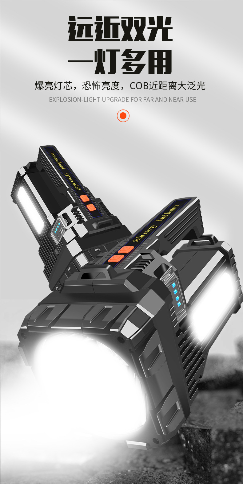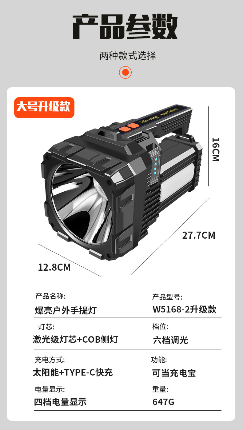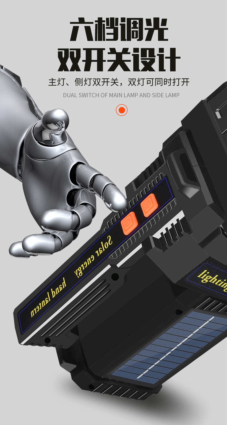 국경 간 새로운 야외 강한 빛 고출력 조명 손전등 다기능 빨간색과 파란색 LED 탐조등 비상 순찰 등