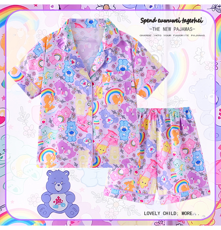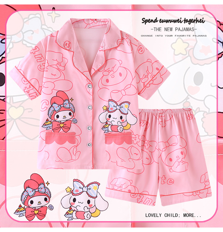 동남아시아 소녀 잠옷 여름 소녀 아이스 실크 얇은 짧은 소매 중대형 어린이 어머니와 드레스 카디건 홈 의류 도매스토어 가기