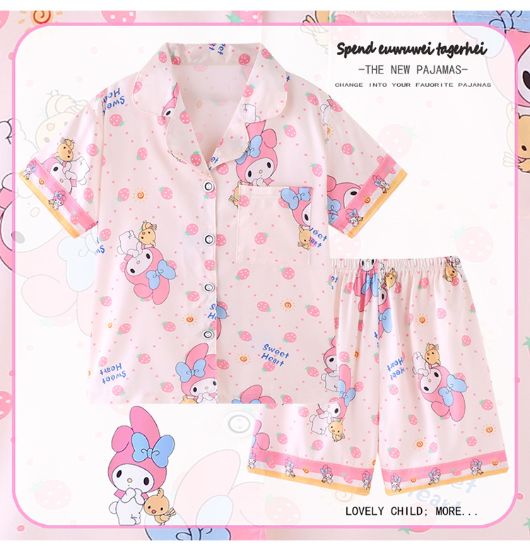 동남아시아 소녀 잠옷 여름 소녀 아이스 실크 얇은 짧은 소매 중대형 어린이 어머니와 드레스 카디건 홈 의류 도매
