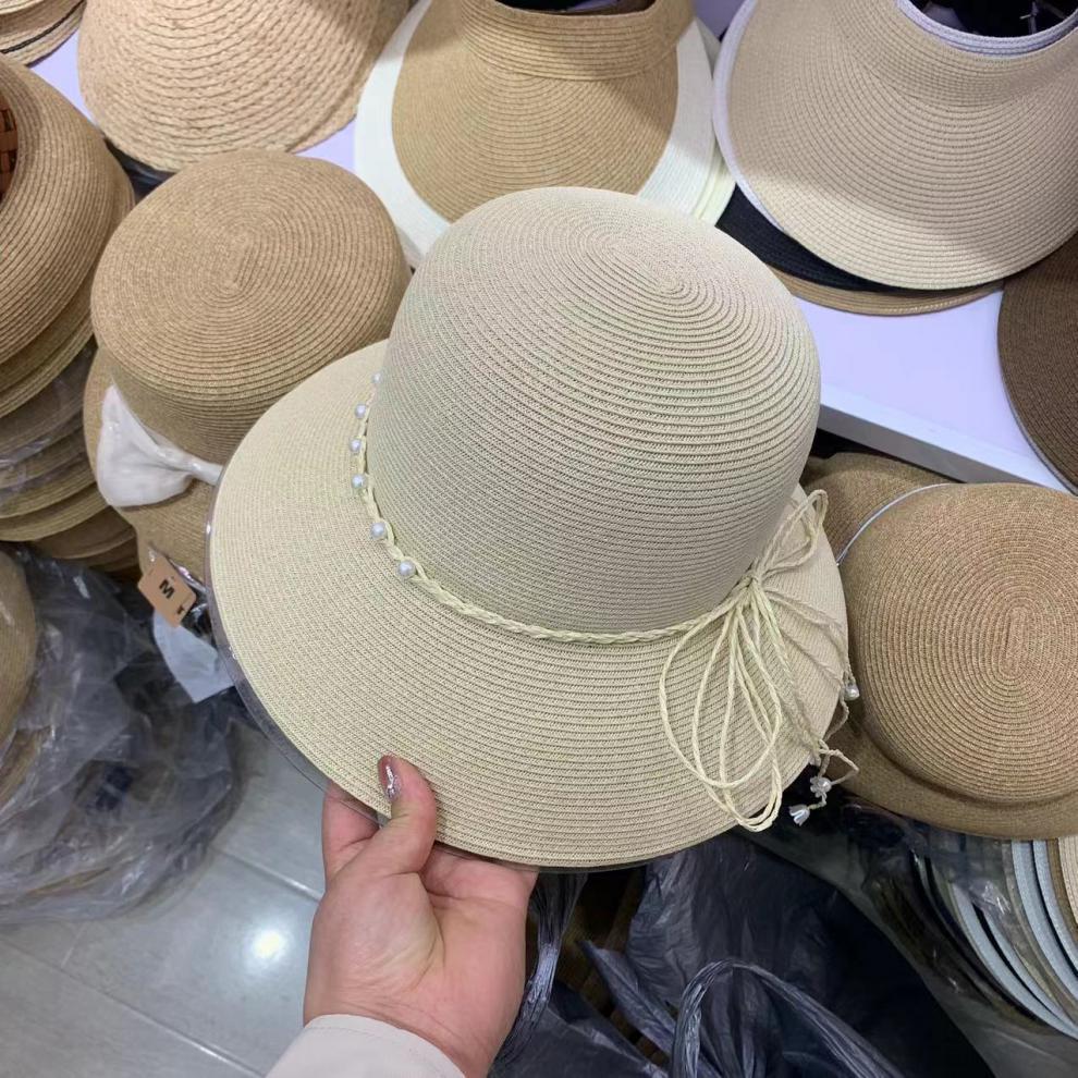Yi Yi New Pearl Bow 니트 선 스크린 모자 여성의 봄과 여름 통기성 모자 우아한 올 매치 태양 모자스토어 가기