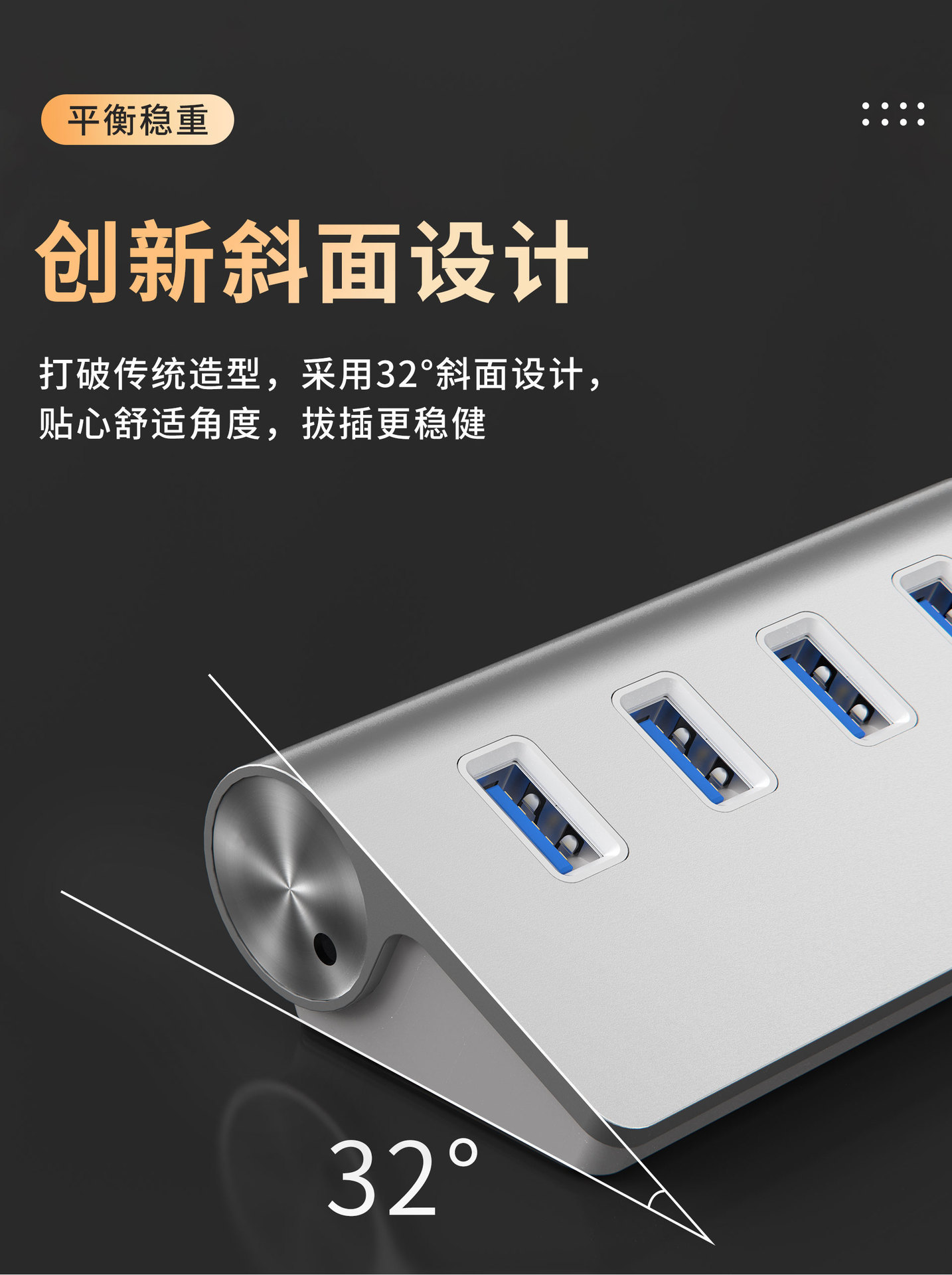 알루미늄 합금 확장 도크 4 USB3.0허브 허브 스플리터 확장기 노트북 외부 DC 전원 공급 장치 포트스토어 가기