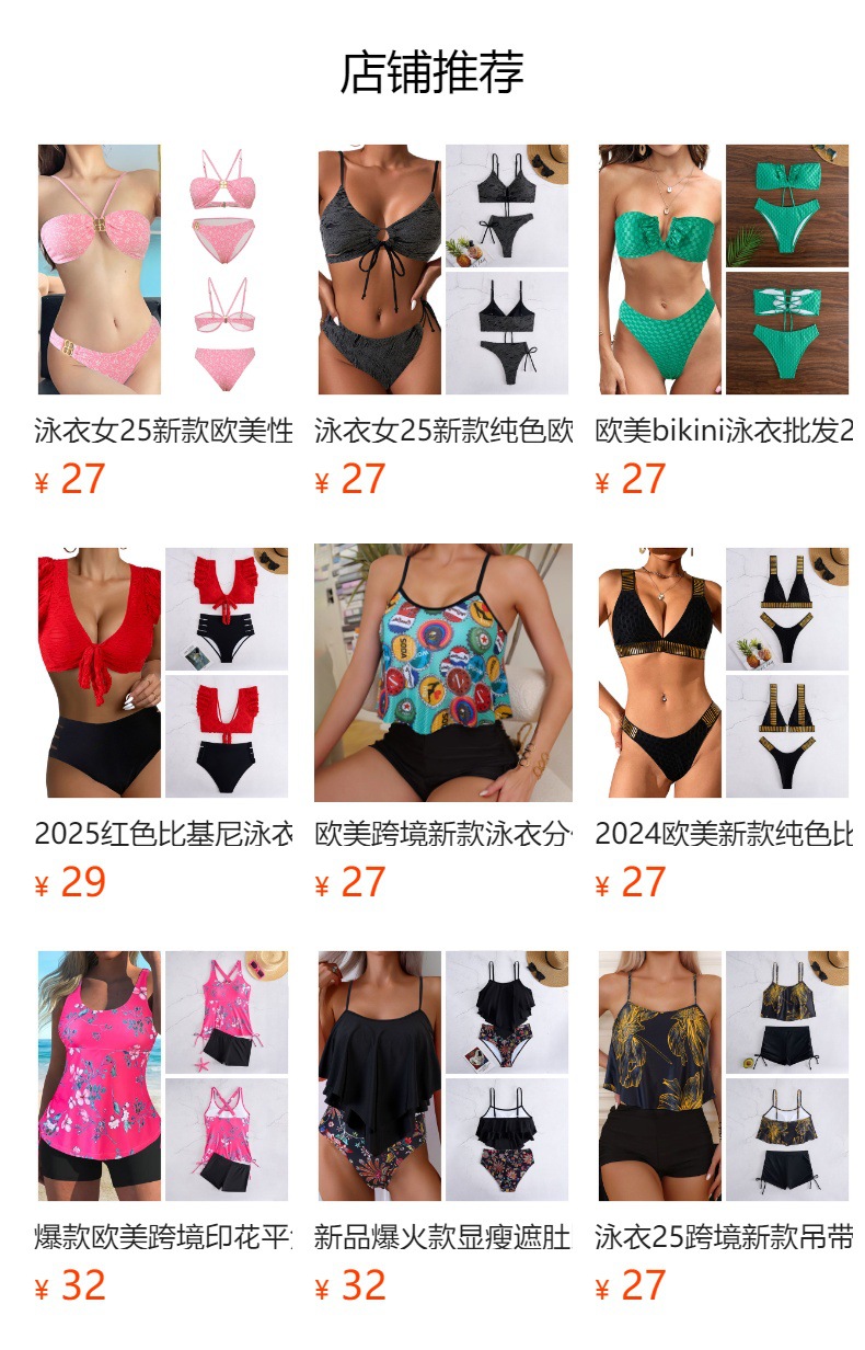 여성 수영복 25 신상 비키니 단색 유럽 및 미국 스타일 섹시 수영복 삼각형 분리형 비키니 인기 상품