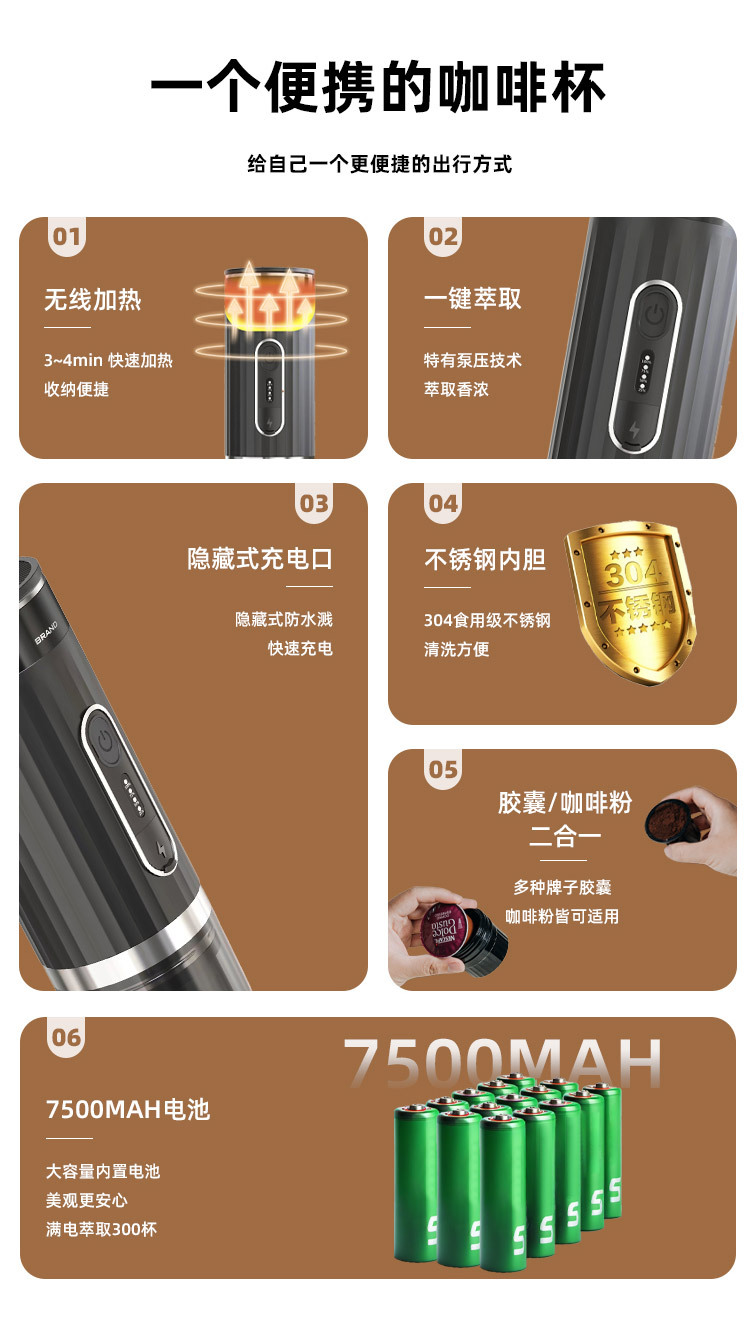 국경 휴대용 커피 기계 무선 난방 커피 기계 야외 자동차 홈 레저 작은 캡슐 커피 기계스토어 가기