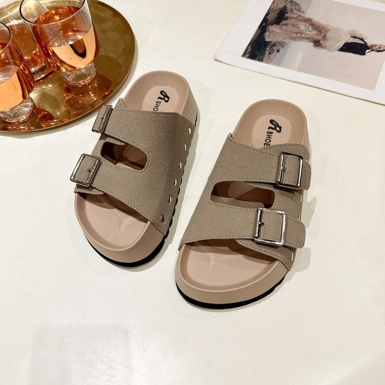 슬리퍼 여성용 외부 착용 유행 두꺼운 바닥 미드 힐 2024 새로운 캐주얼 해변 젖은 물 미끄럼 방지 비치 샌들