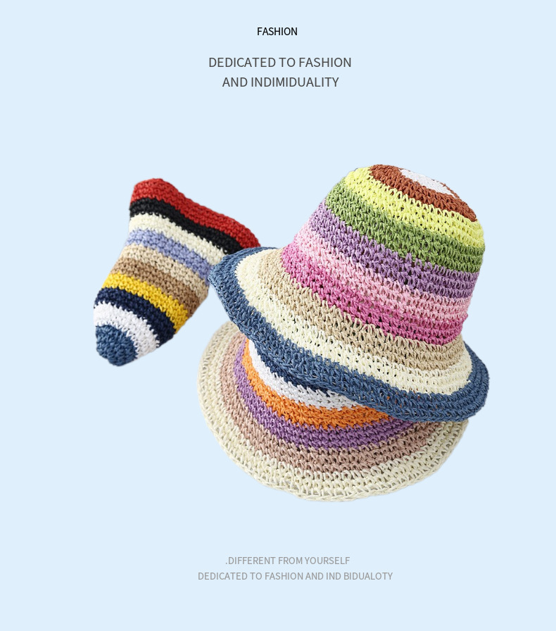 Yi Yi 여름 한국 양산 모자 해변 선 스크린 모자 어린이 신선한 짠 어부 모자 무지개 수제 모자