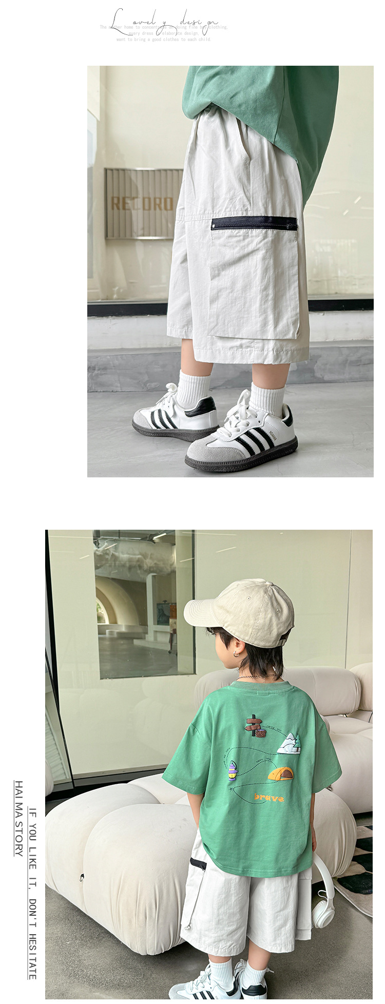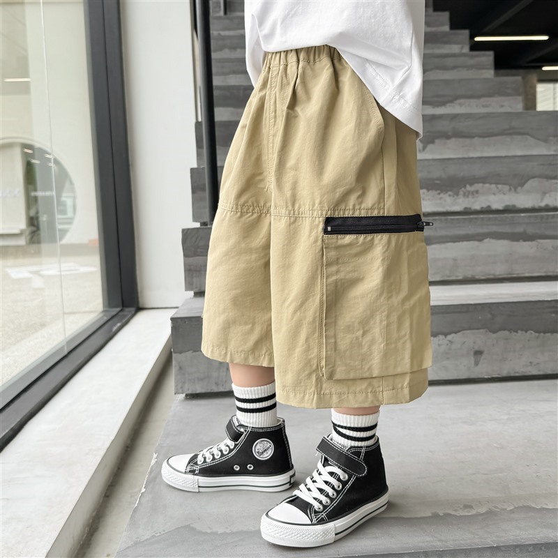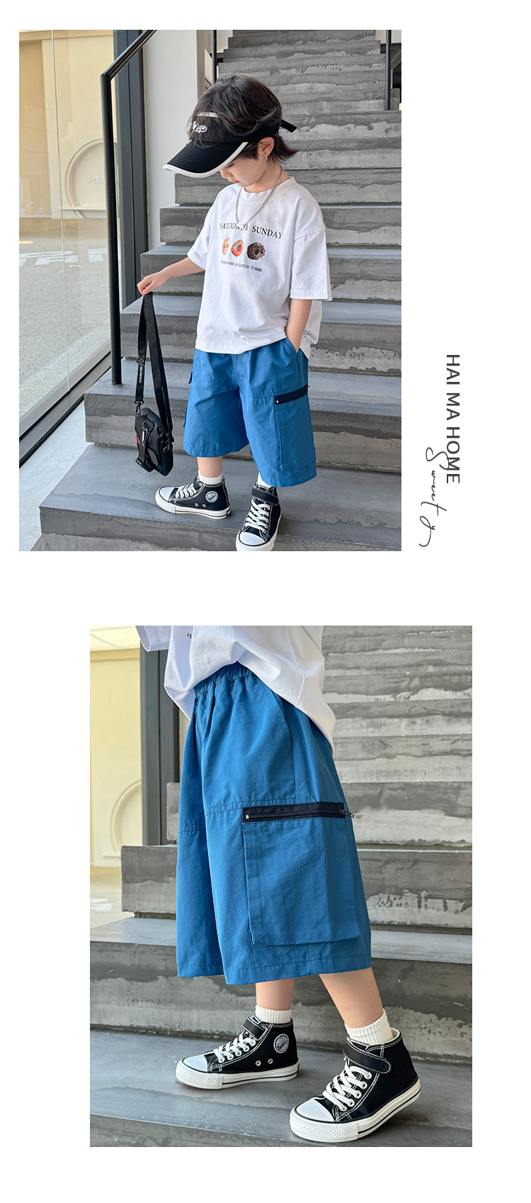Haima의 여름 2024 년 새 소년 큰 포켓 트렌디 느슨한 바지 캐주얼 반바지 한국 아동복스토어 가기