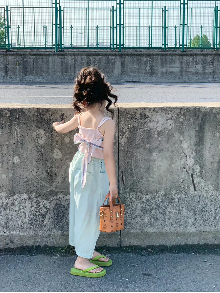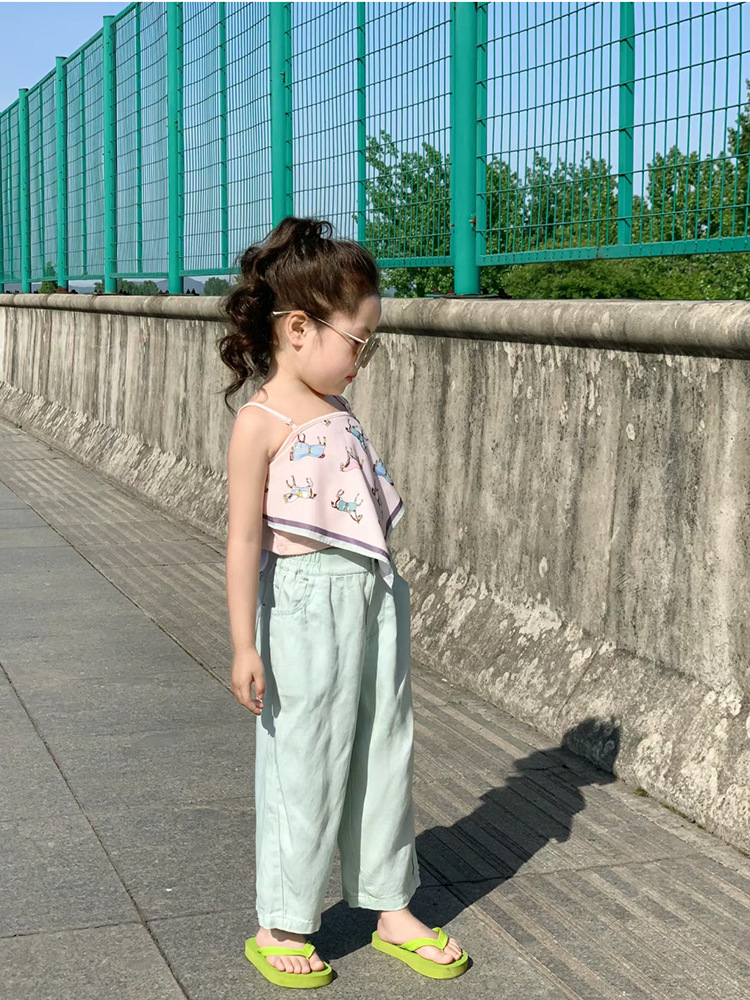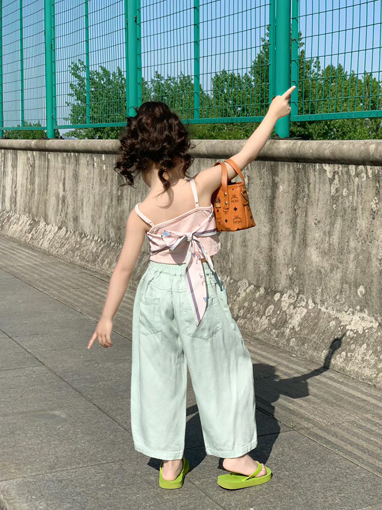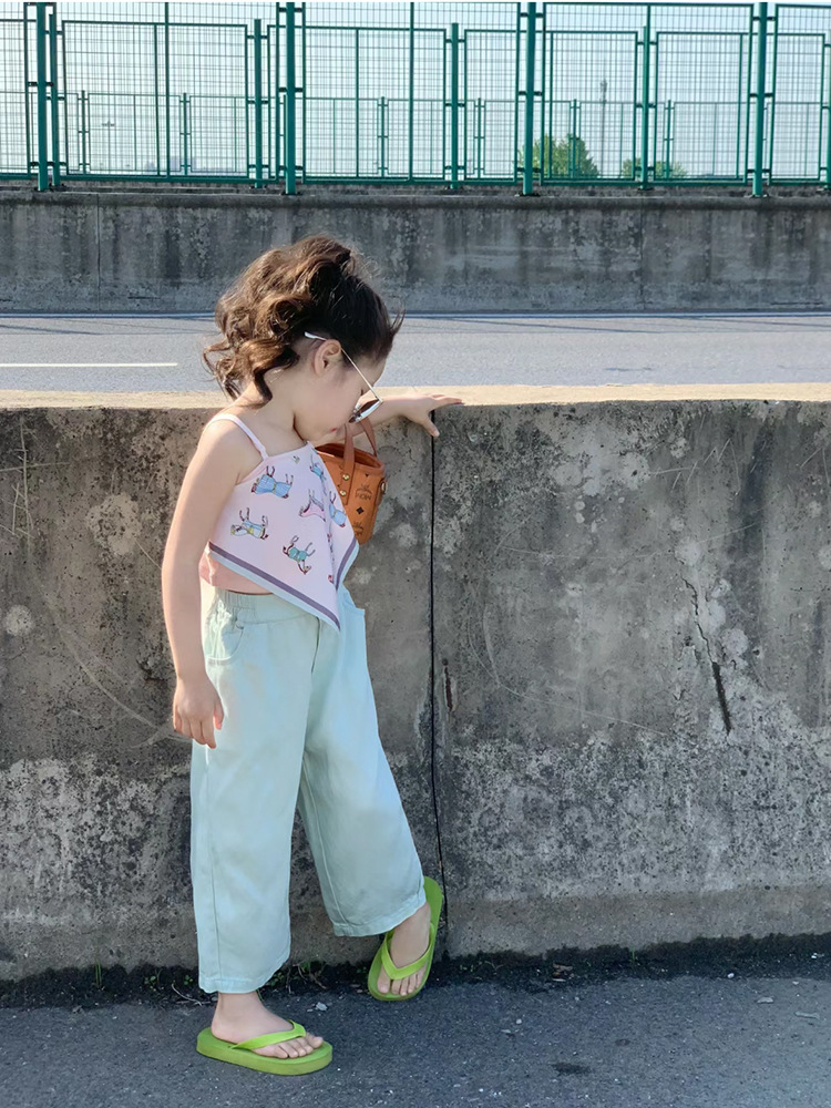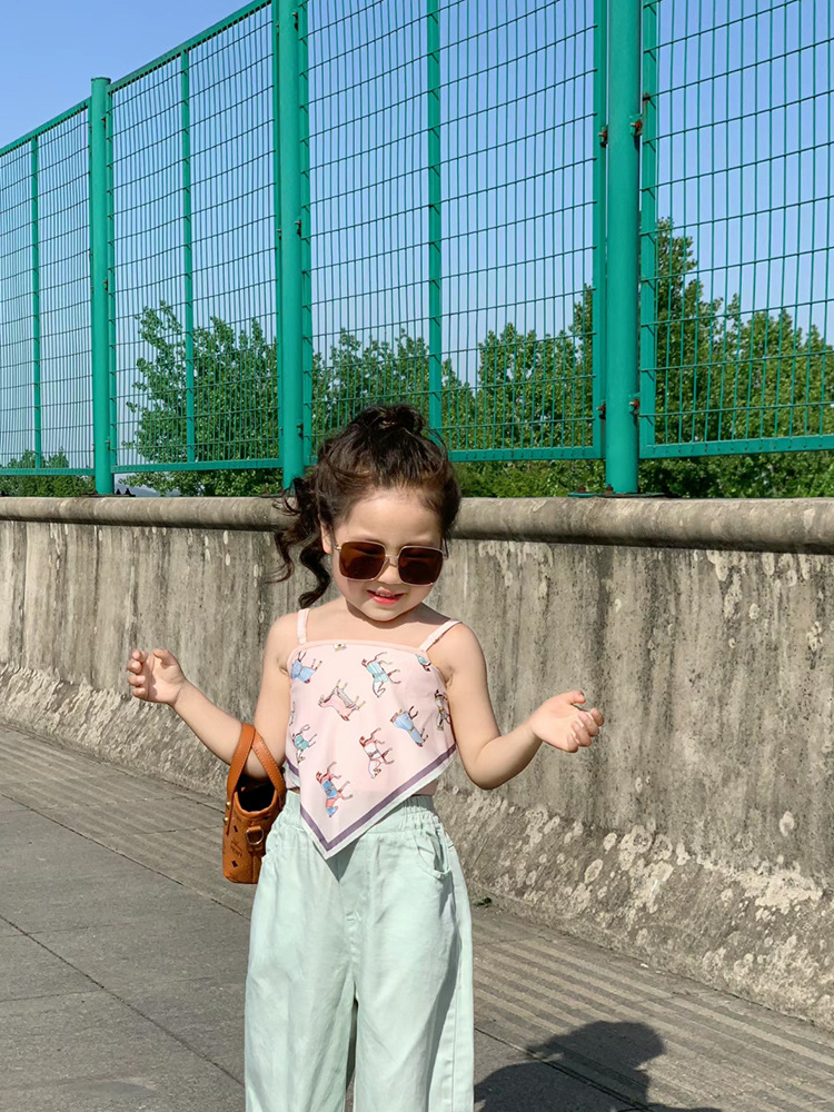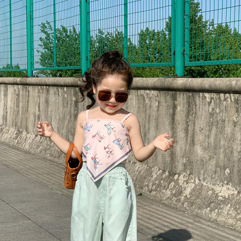 한국 스타일 소녀 세트 2024 여름 새로운 디자인 센스 만화 스카프 슬링 작은 신선한 패션 청바지 트렌디스토어 가기