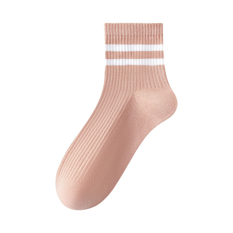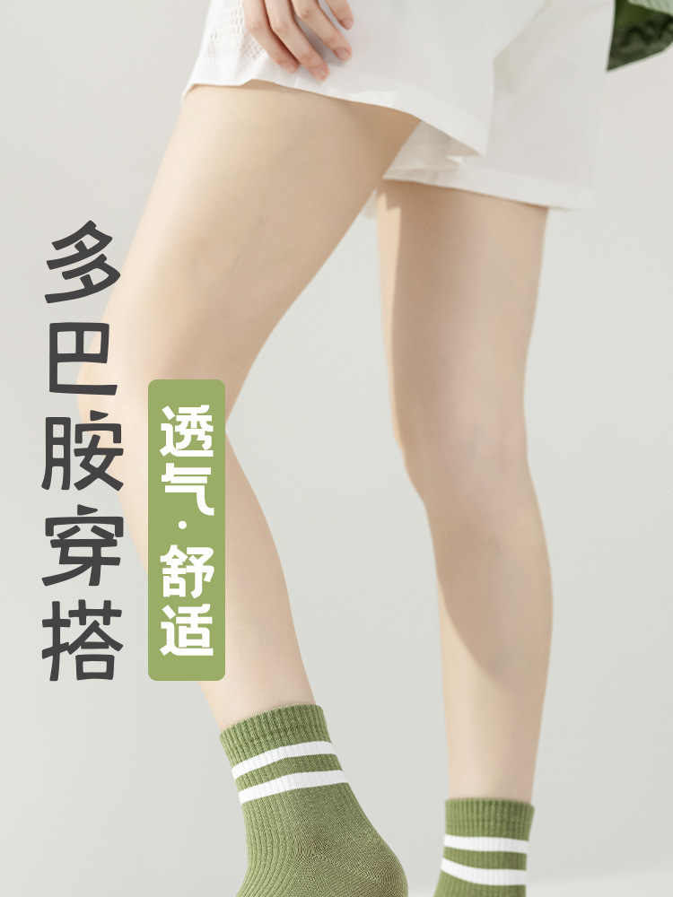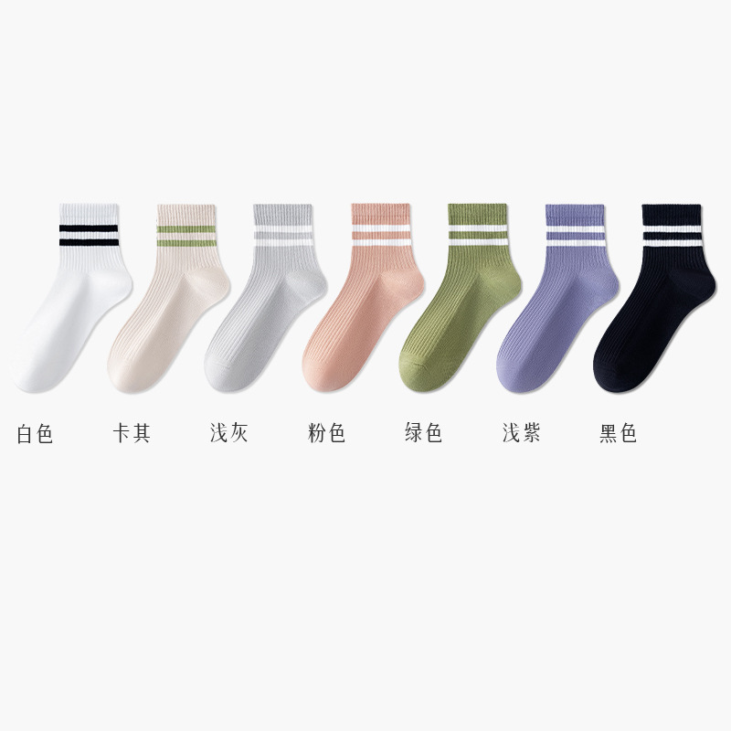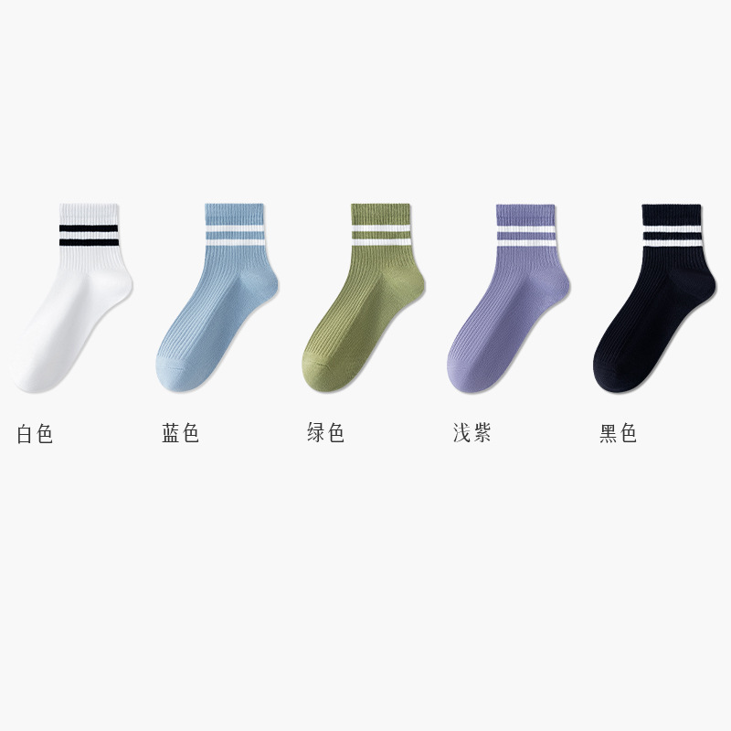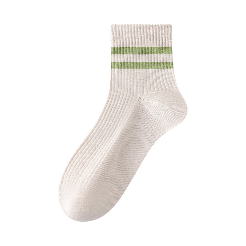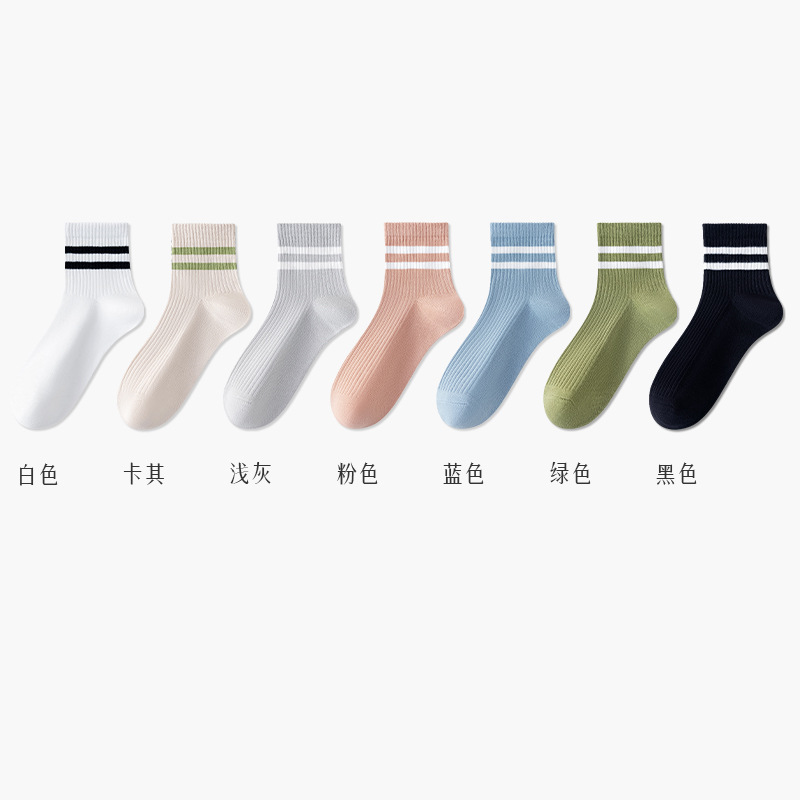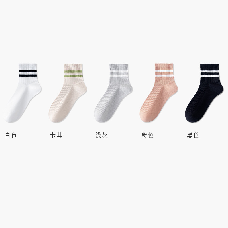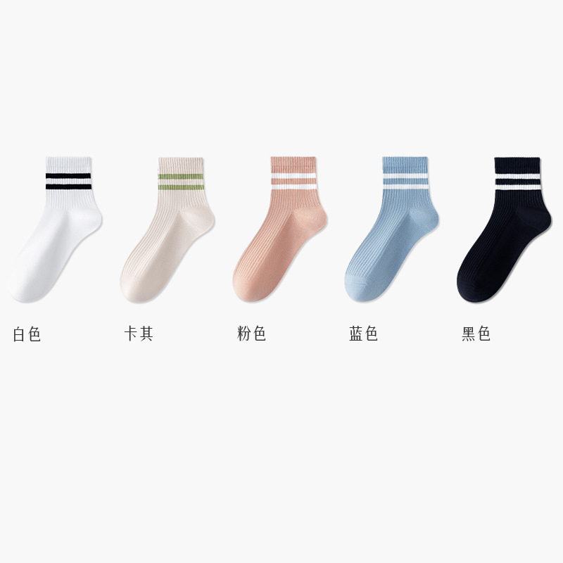 주지 양말 여성용 봄 7A 항균 미드 튜브 양말 땀 흡수 통기성 여성 줄무늬 2 바 캐주얼 유행 양말 DEY