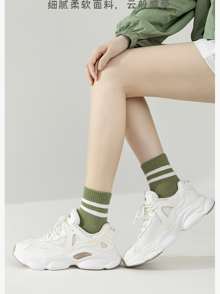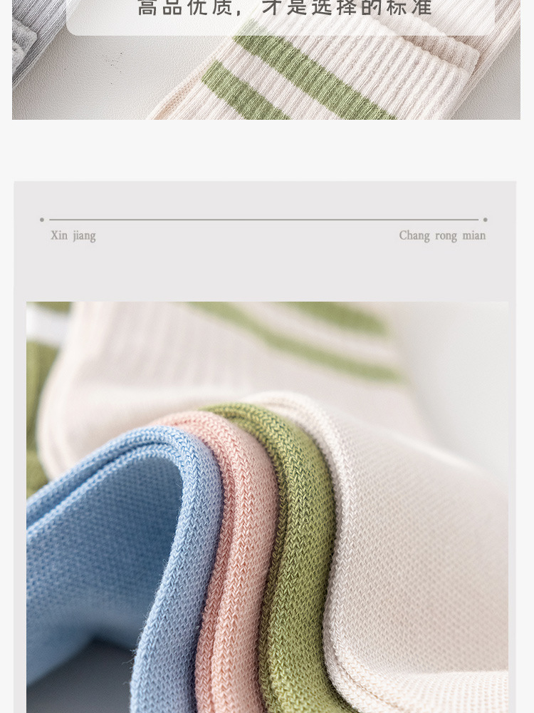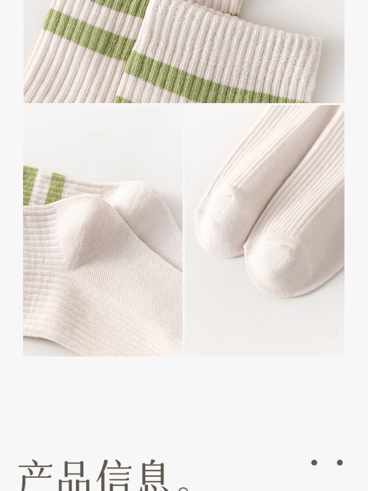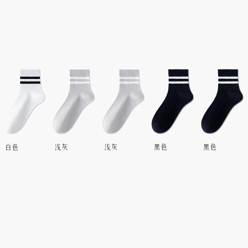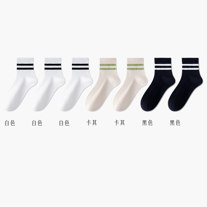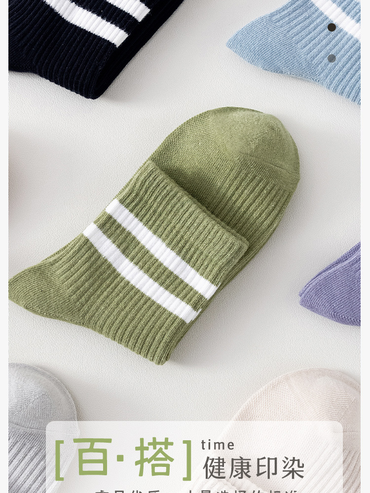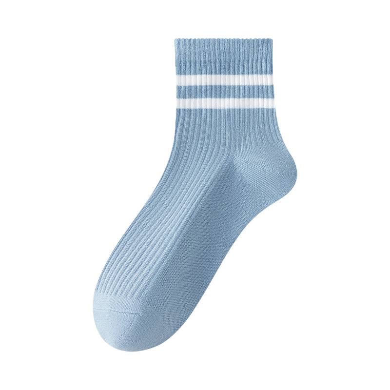 주지 양말 여성용 봄 7A 항균 미드 튜브 양말 땀 흡수 통기성 여성 줄무늬 2 바 캐주얼 유행 양말 DEY