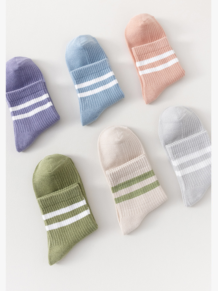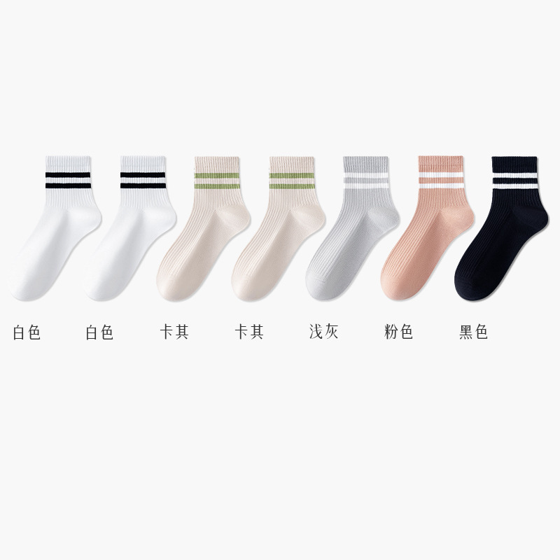 주지 양말 여성용 봄 7A 항균 미드 튜브 양말 땀 흡수 통기성 여성 줄무늬 2 바 캐주얼 유행 양말 DEY스토어 가기