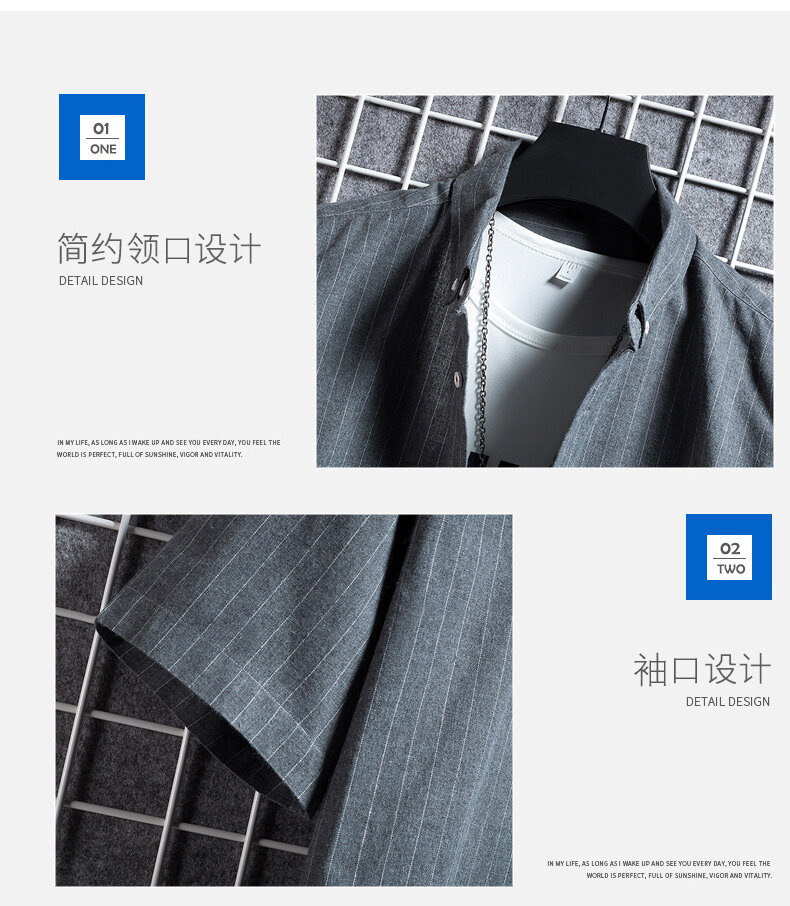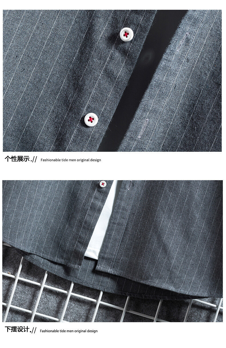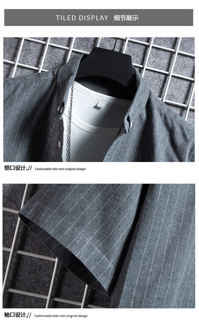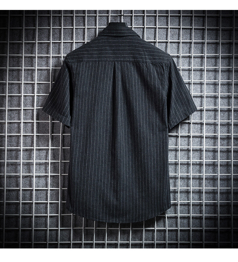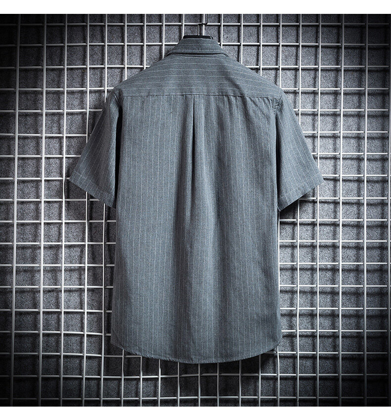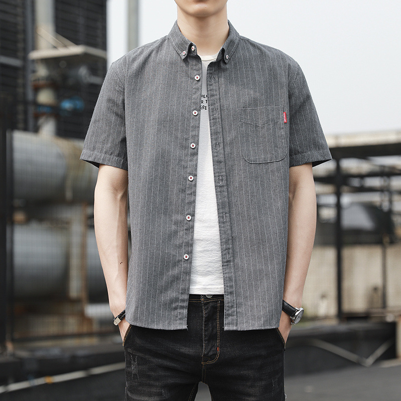 크로스 보더 스트라이프 남성용 캐주얼 셔츠 여름 트렌디 남성용 버튼 칼라 루즈 짧은 소매 탑 스트리트 스트라이프 셔츠스토어 가기