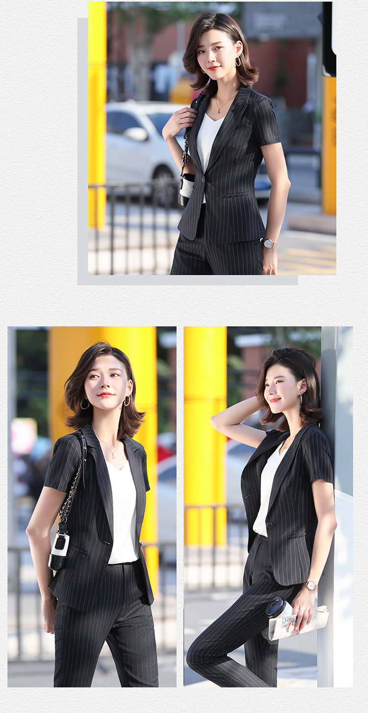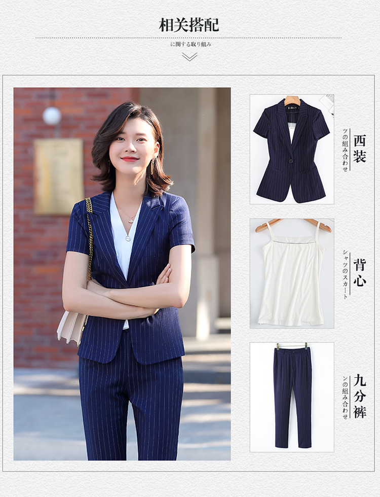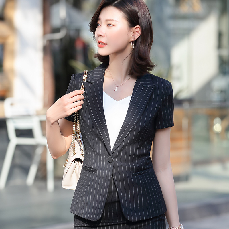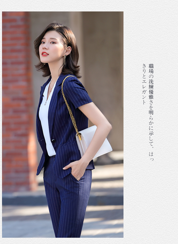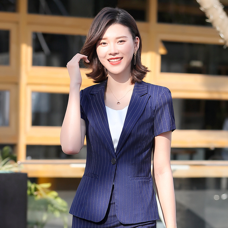블루 스트라이프 세트 세트 여성 2024 년 새 여름 반팔 작업복 전문 기질 호텔 매니저 작업복스토어 가기