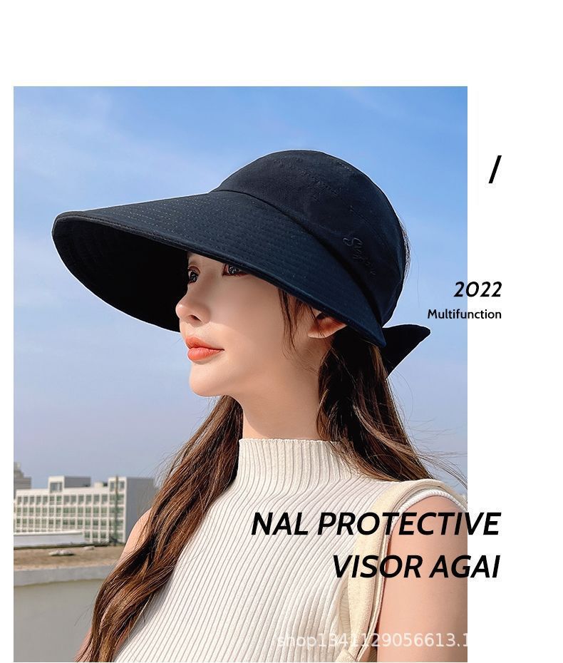 Yi Yi Hat 여성의 여름 큰 Eave 빈 탑 차양 모자 안티 자외선 얼굴 덮음 야외 자전거 타기