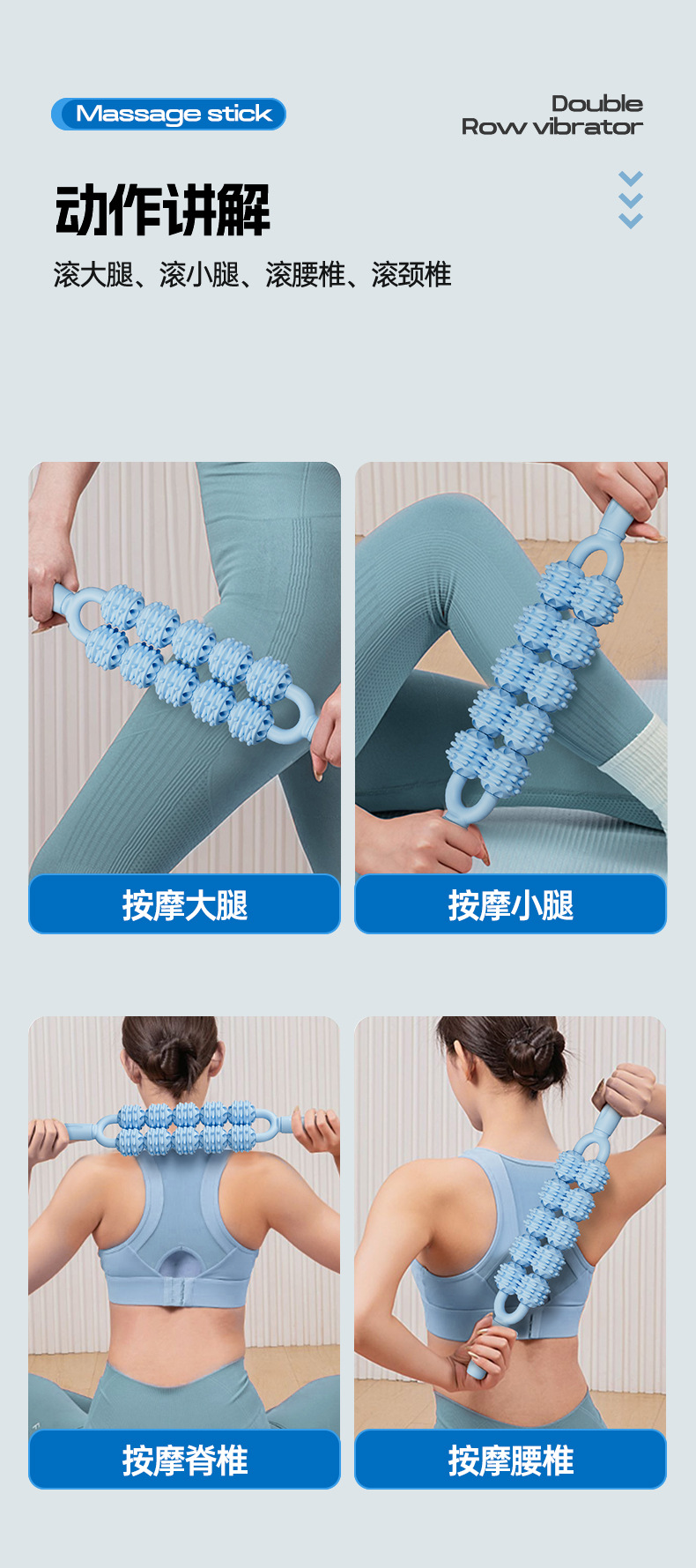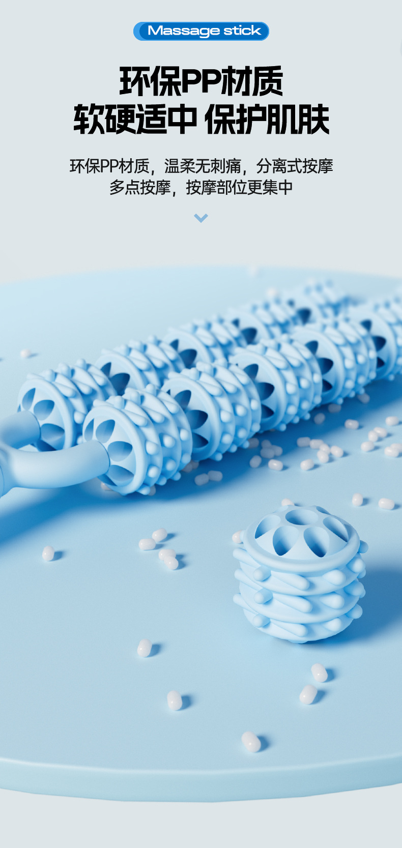 10 라운드 마사지 스틱 요가 스파이크 마사지 스틱 마사지 종아리 근육 이완 롤러 샤프트 다리 마사지