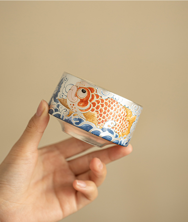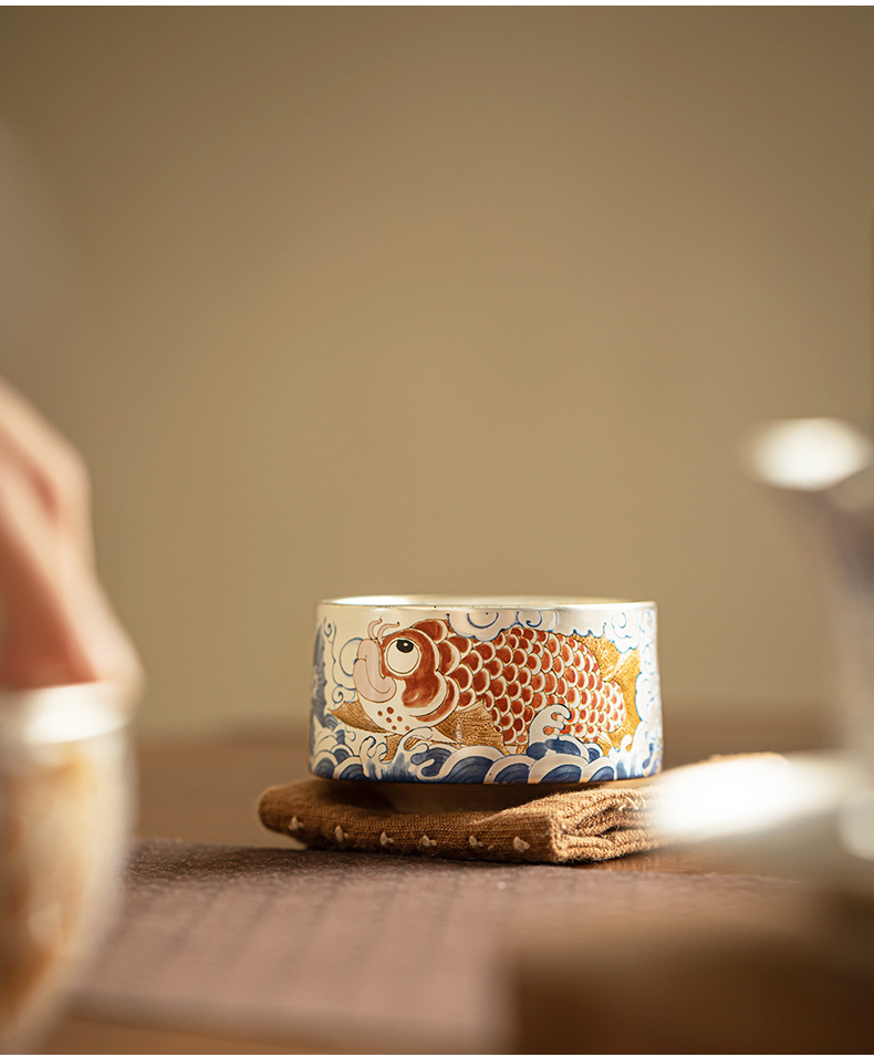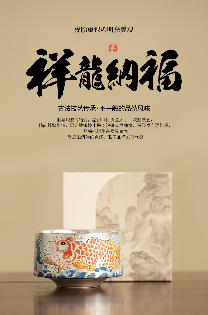 Jingdezhen 수제 도자기 타일 실버 티 컵 마스터 컵 Pu'er 컵 차 시음 컵 드래곤 년 제한 가구 사무실 선물 상자