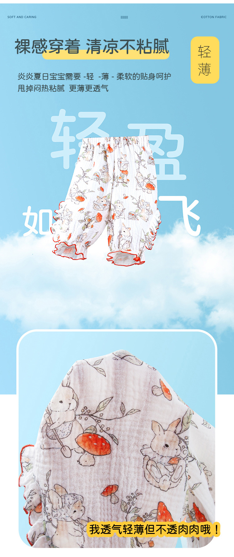 순면 캐주얼 바지 소년 소녀 아기 레이스 발목 바지 거즈 어린이 모기 방지 바지 엘라스토 허리와 함께 올 매치 얇은 바지