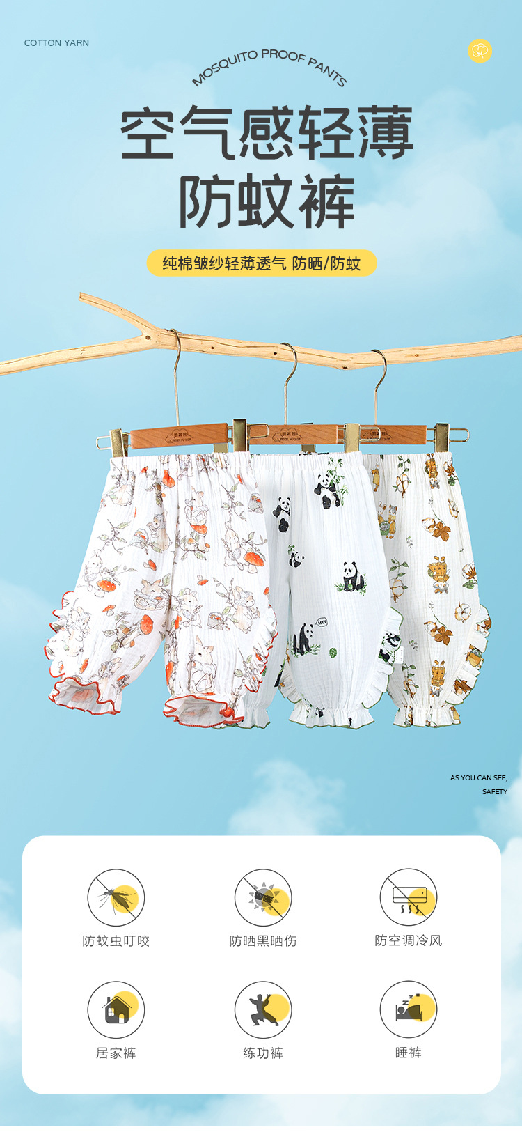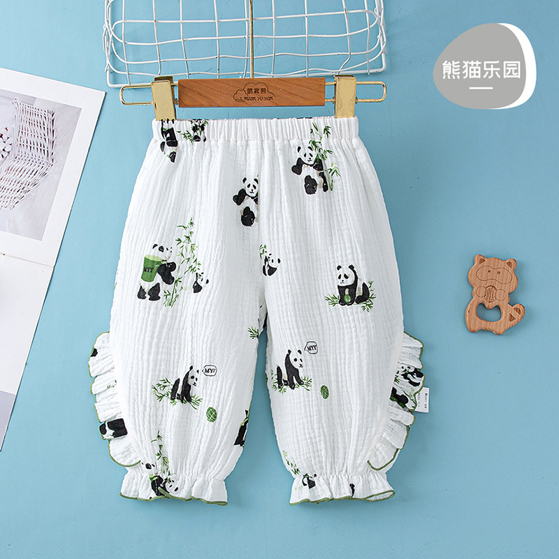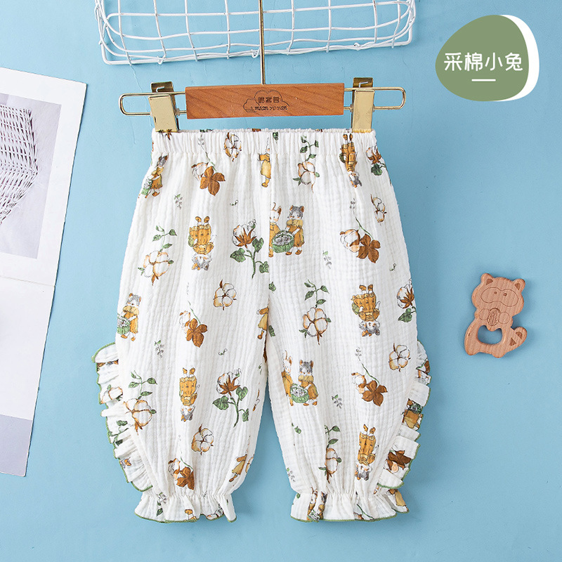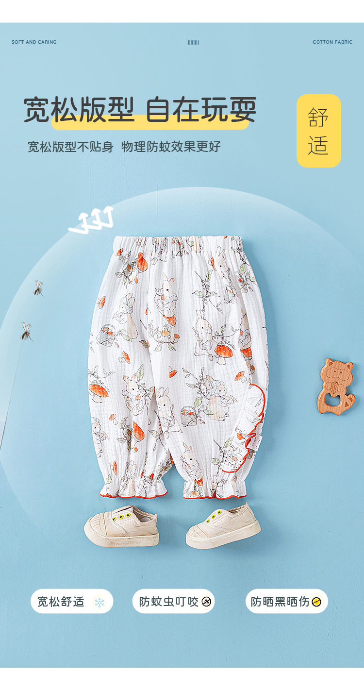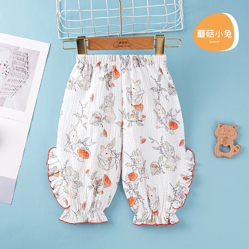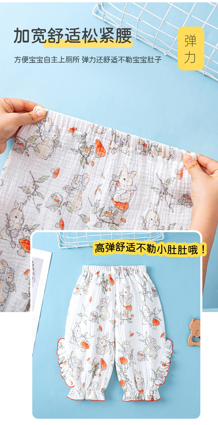 순면 캐주얼 바지 소년 소녀 아기 레이스 발목 바지 거즈 어린이 모기 방지 바지 엘라스토 허리와 함께 올 매치 얇은 바지스토어 가기