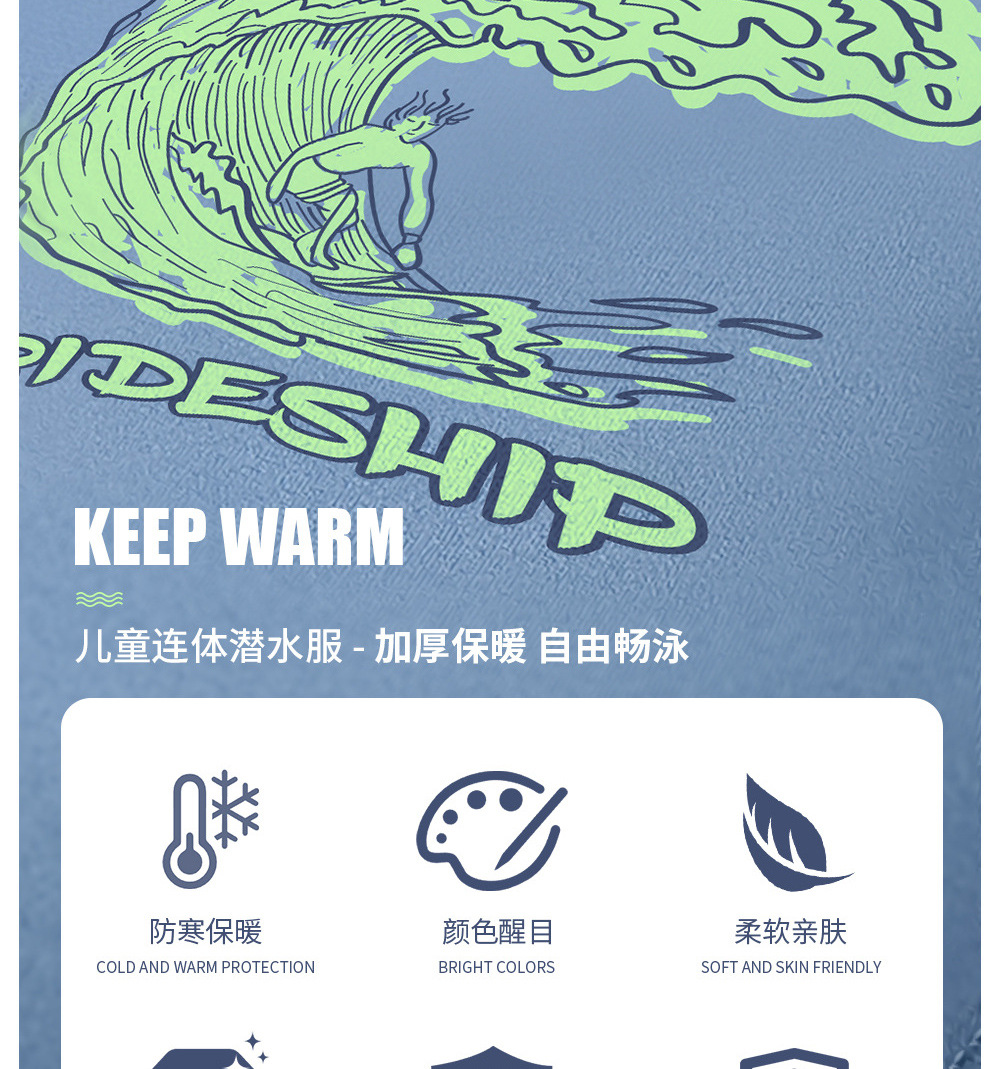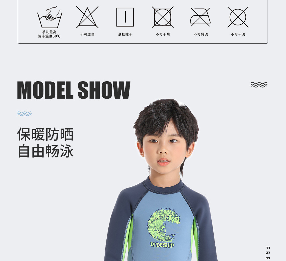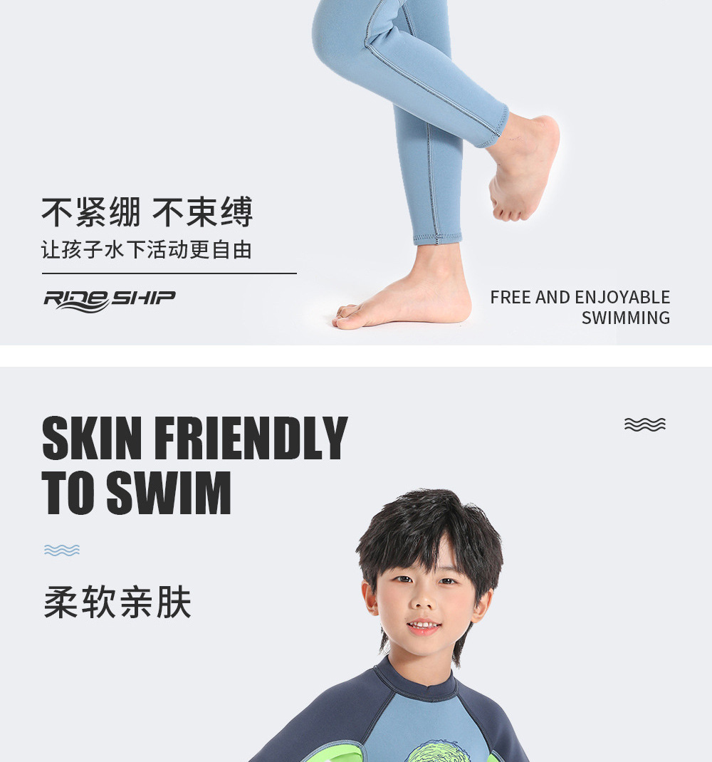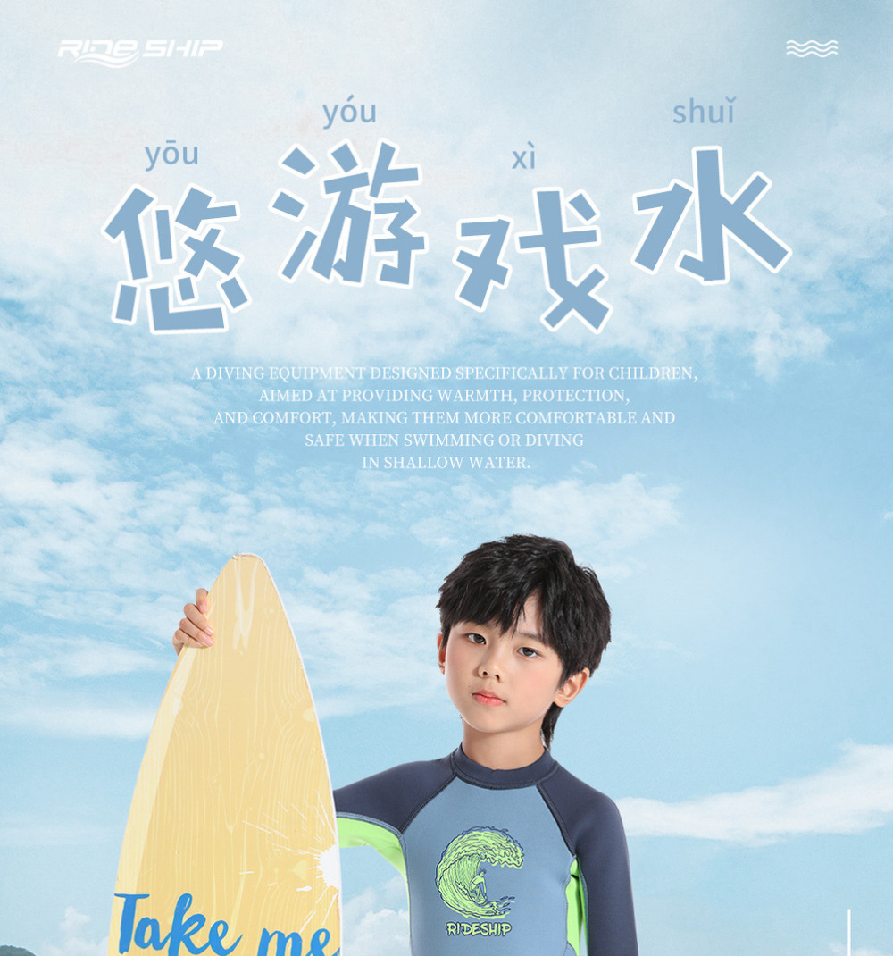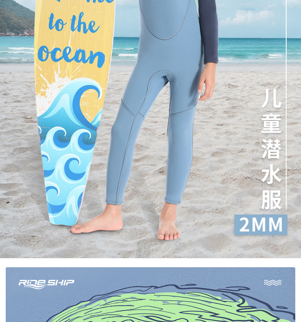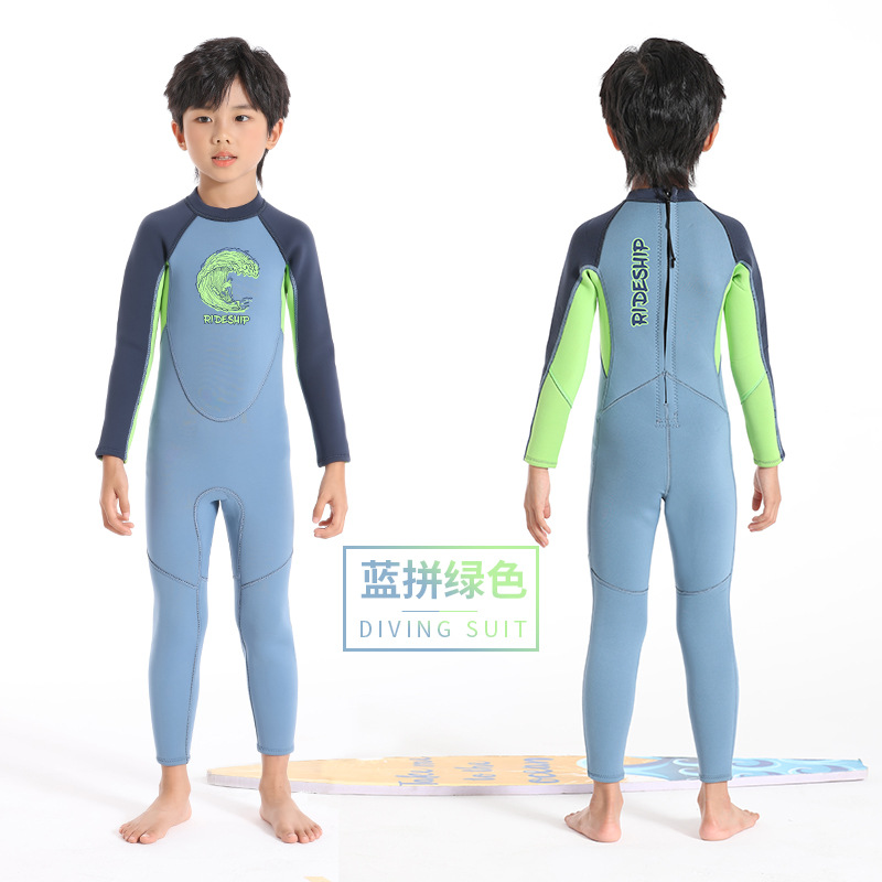 남학생과 여학생을위한 라이드 SHIP 어린이 수영복 따뜻한 2mm 긴 소매 바디 수영 서핑 세트스토어 가기
