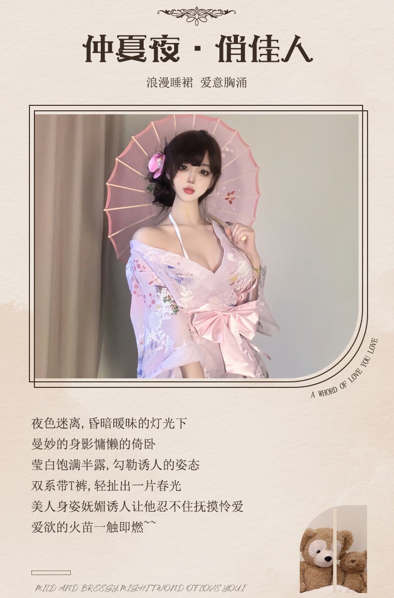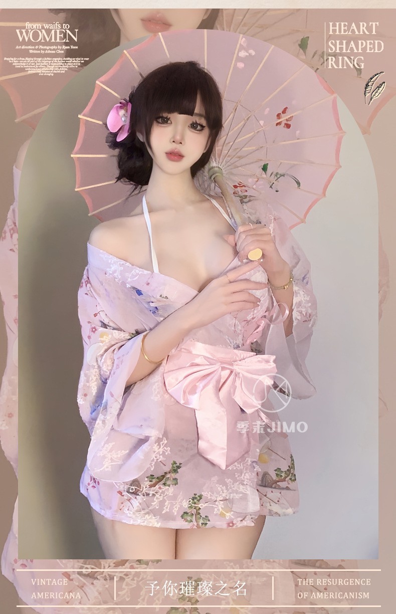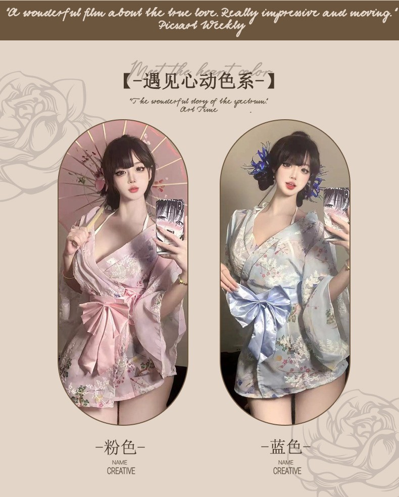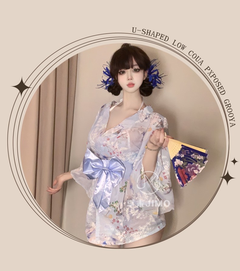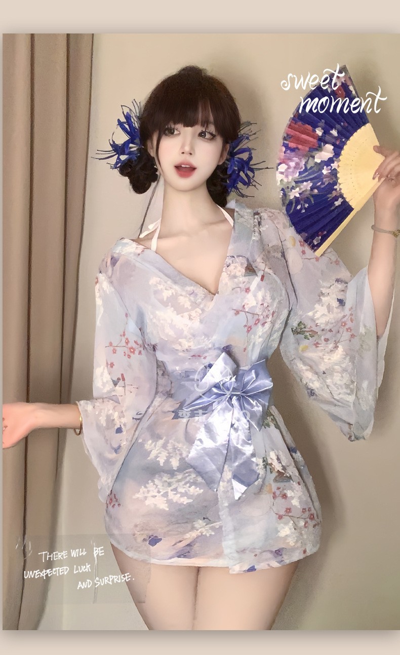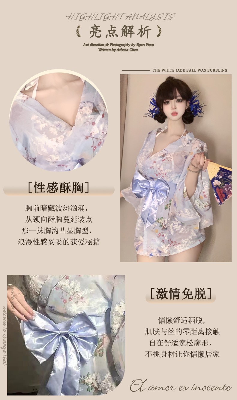 도쿄 신들 소녀 * 달콤한 활 섹시 인쇄 기모노 목욕 가운 순수한 욕망 쉬폰 잠옷 섹시한 속옷