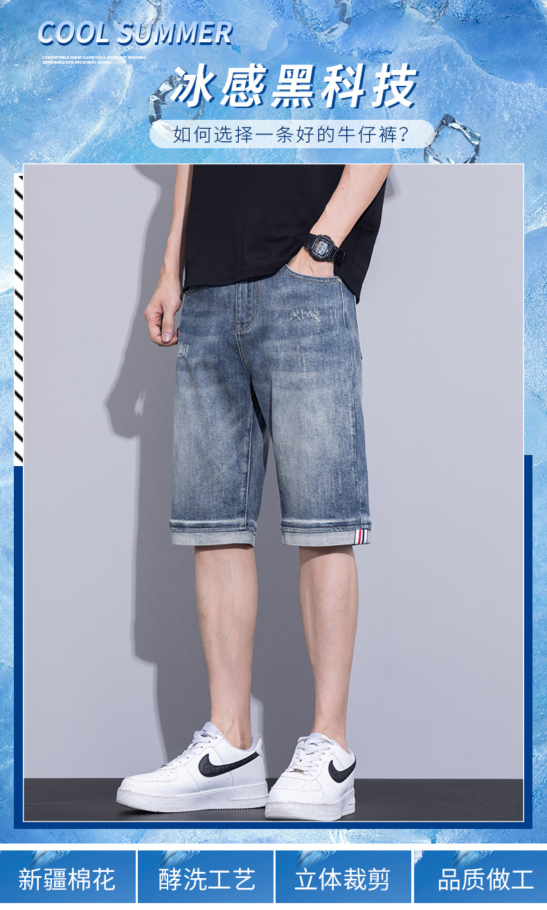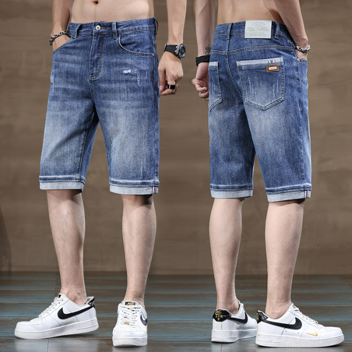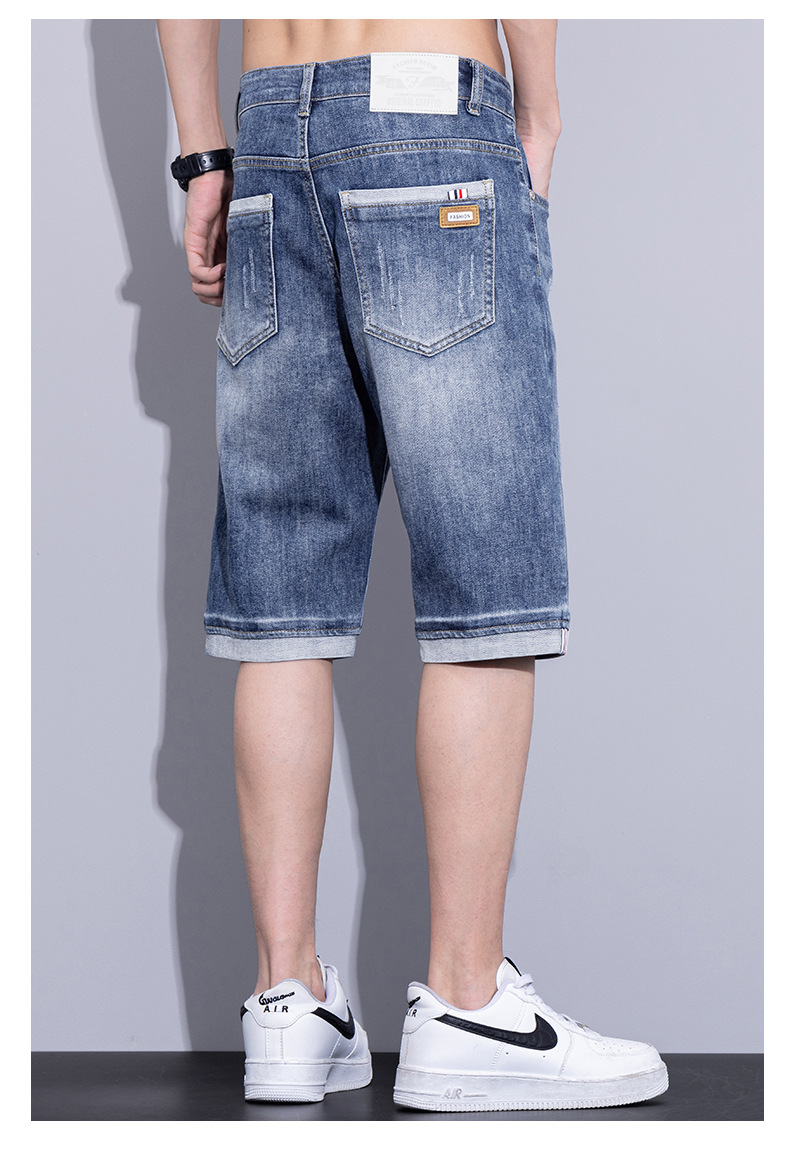여름 얇은 5 점 청바지 남성용 느슨한 캐주얼 중장 바지 플러스 사이즈 패션 통기성 캐주얼 남성 학생 반바지