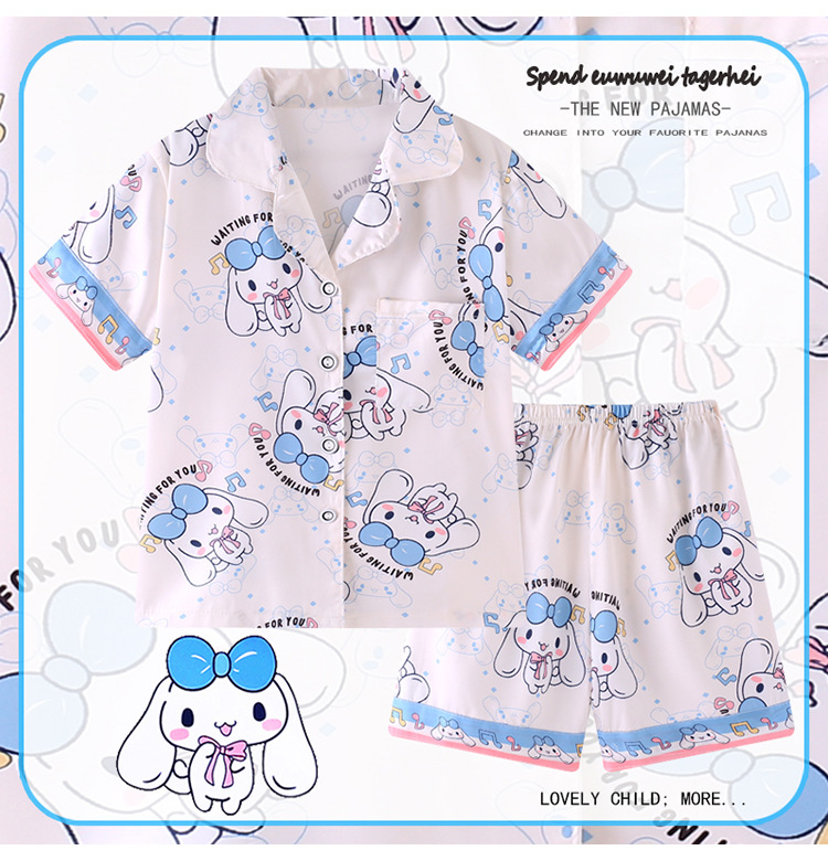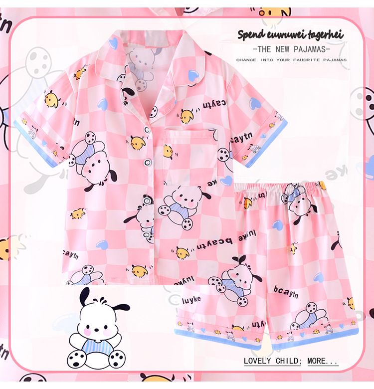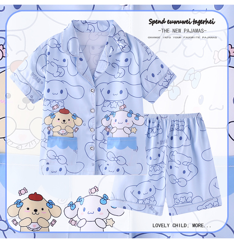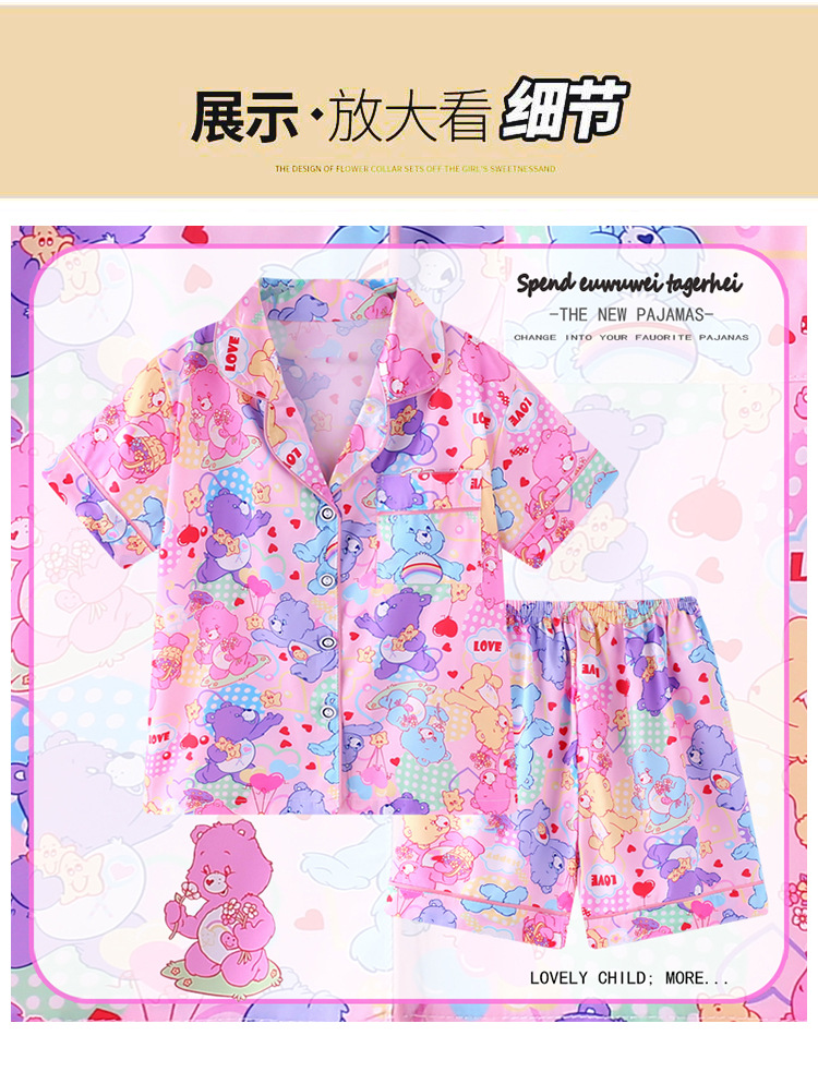 국경 간 어린이 잠옷 소녀 여름 어머니와 드레스 아이스 실크 만화 얇은 소녀 반팔 카디건 홈 의류 세트스토어 가기