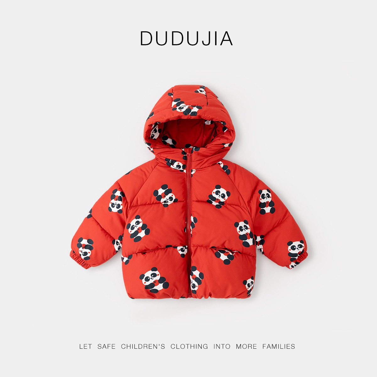 • 빨간색 전체 프린트 레서판다 면 점퍼