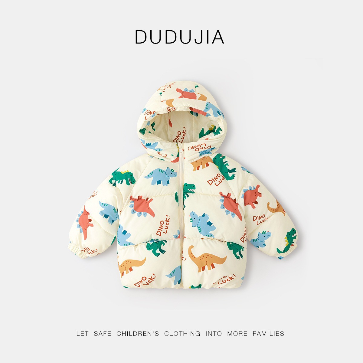 • 흰색 바탕에 공룡이 프린트된 면 재킷