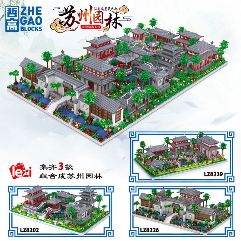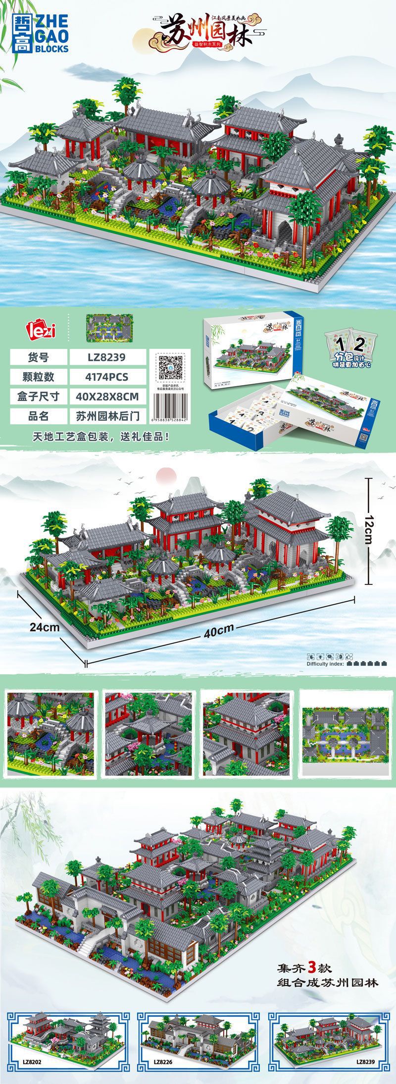 Lezi Creative LZ8239 소형 다이아몬드 입자 중국 스타일 쑤저우 정원 뒷문 모델 퍼즐 빌딩 블록 장난감
