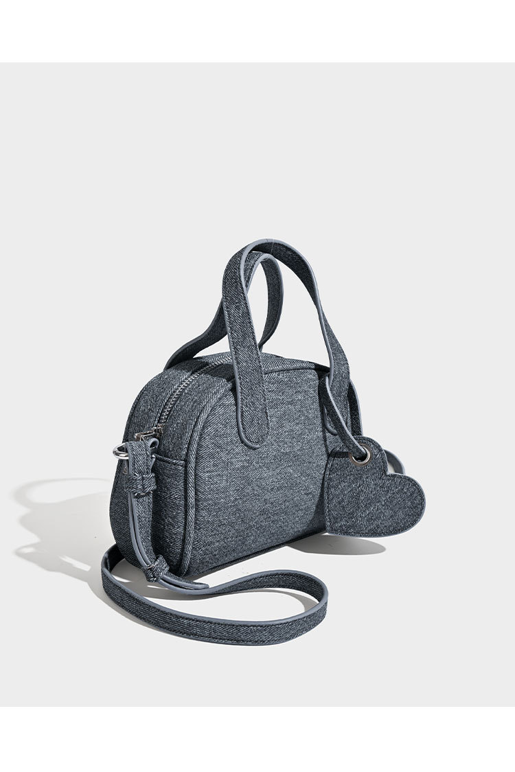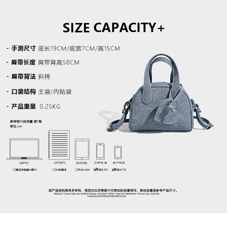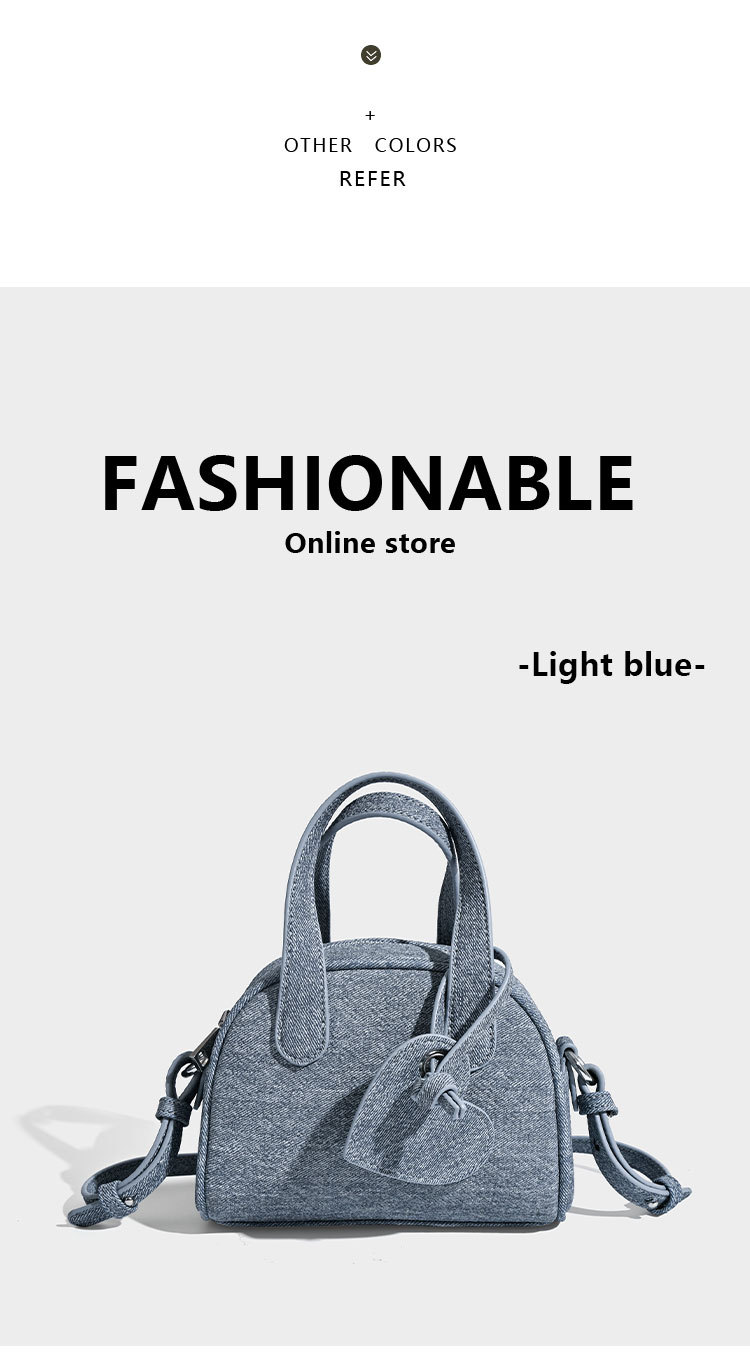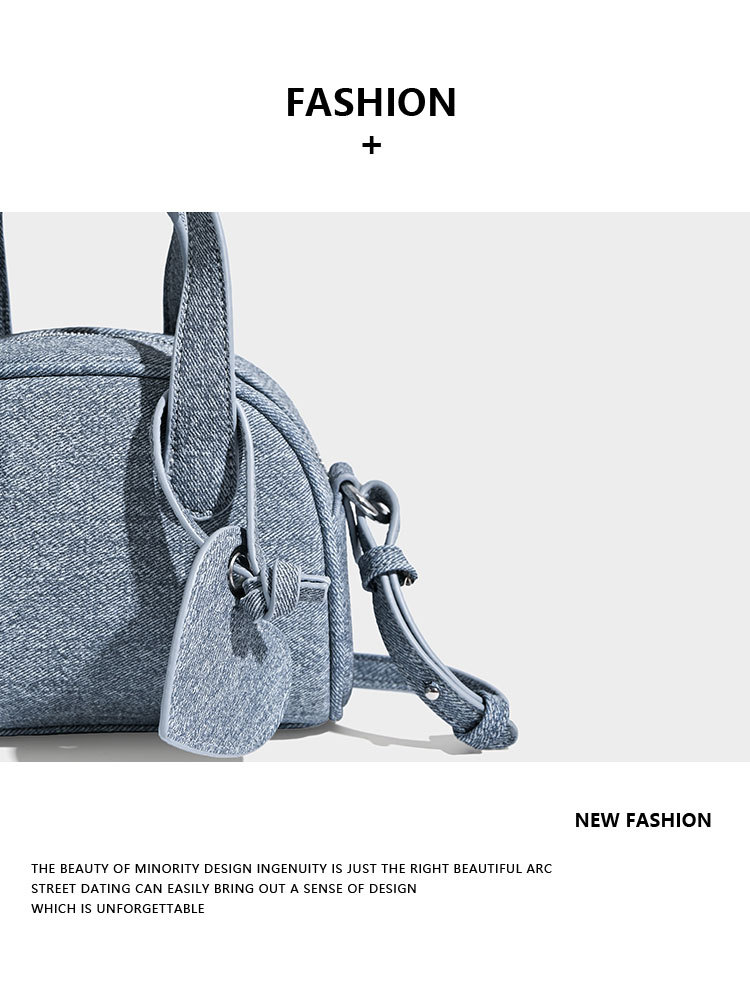 보스턴 핸드백 가방 여성 스몰 사이즈 2024 새로운 봄 트렌디 한 틈새 데님 블루 디자인 겨울 크로스 바디 백