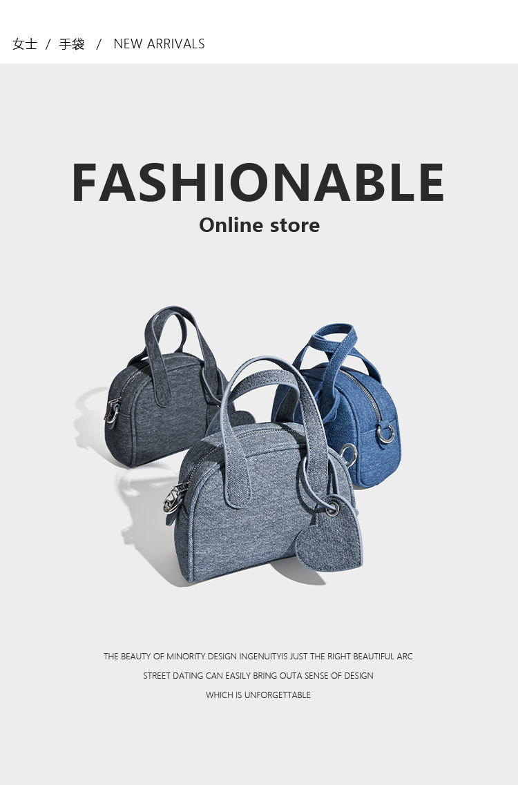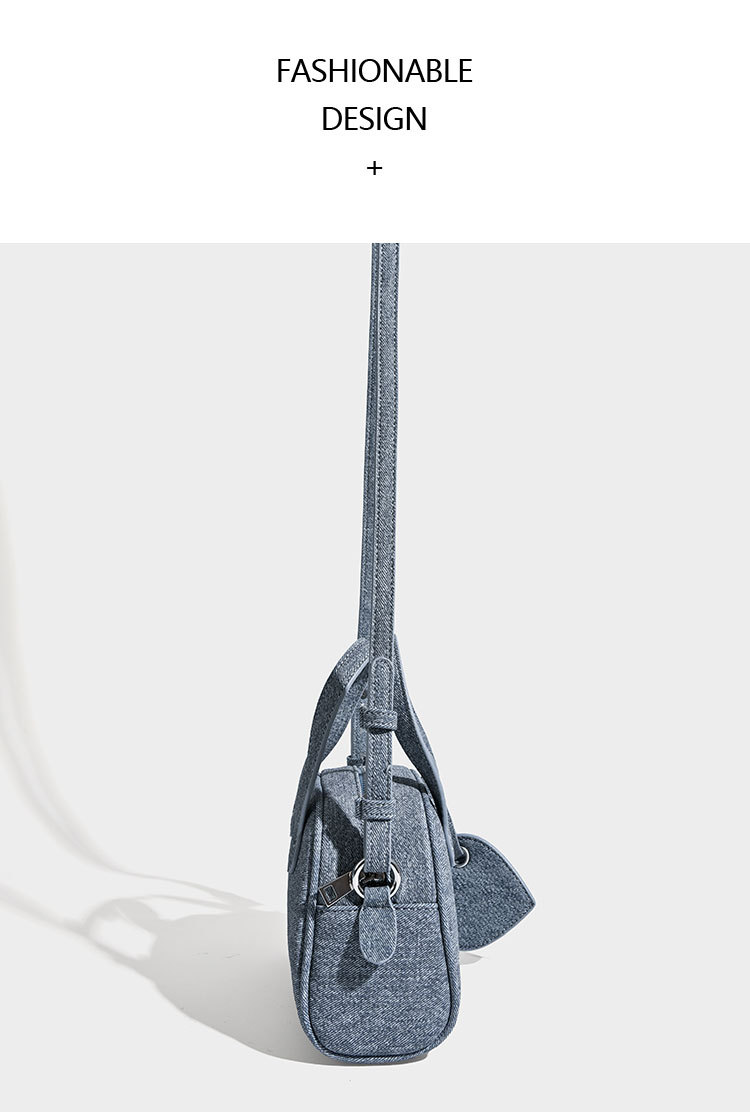 보스턴 핸드백 가방 여성 스몰 사이즈 2024 새로운 봄 트렌디 한 틈새 데님 블루 디자인 겨울 크로스 바디 백스토어 가기