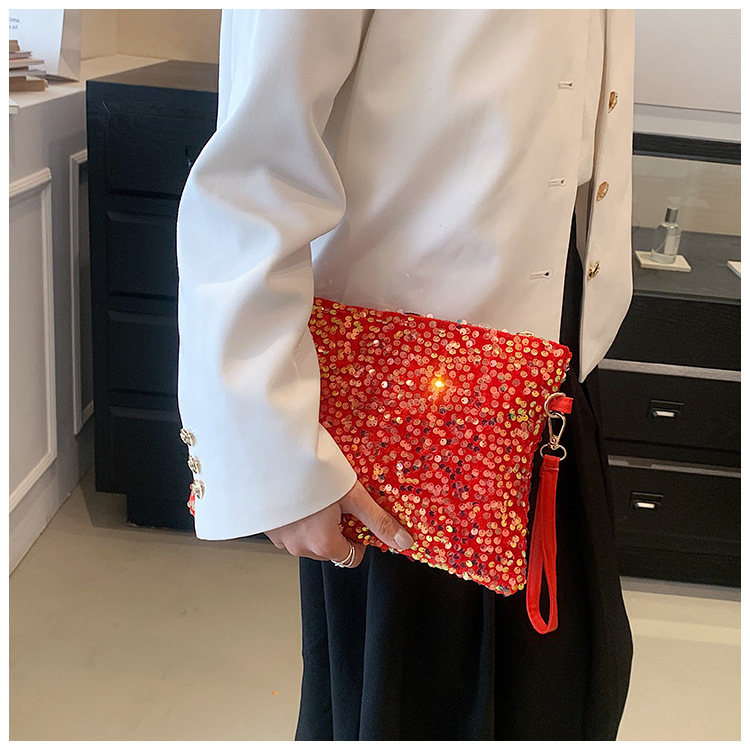 Sequin 봉투 가방 2024 새로운 여름 반짝이는 술 클러치 백 이브닝 백 유행 우아한 핸드백스토어 가기