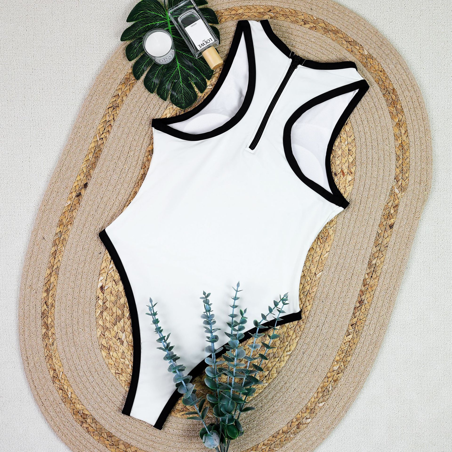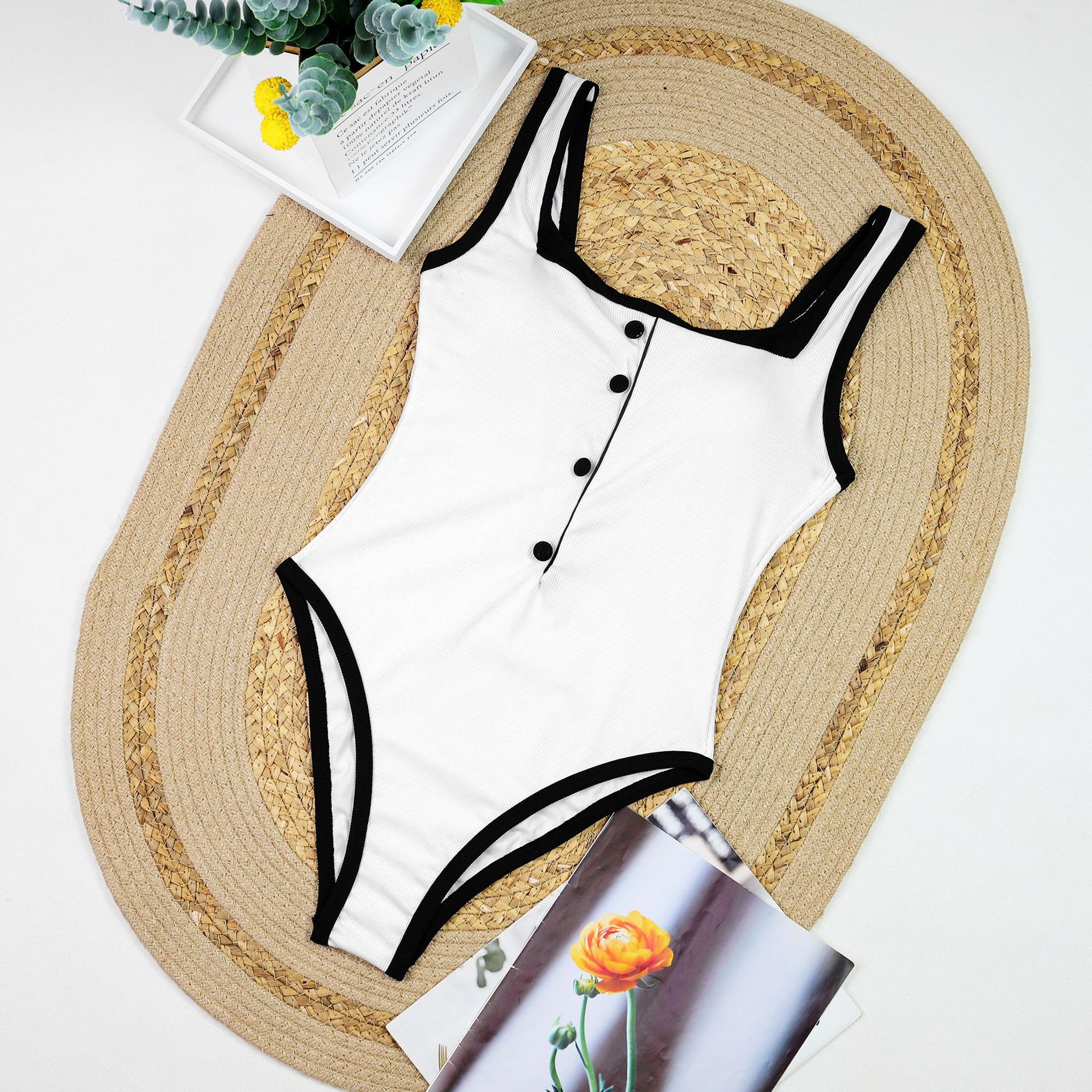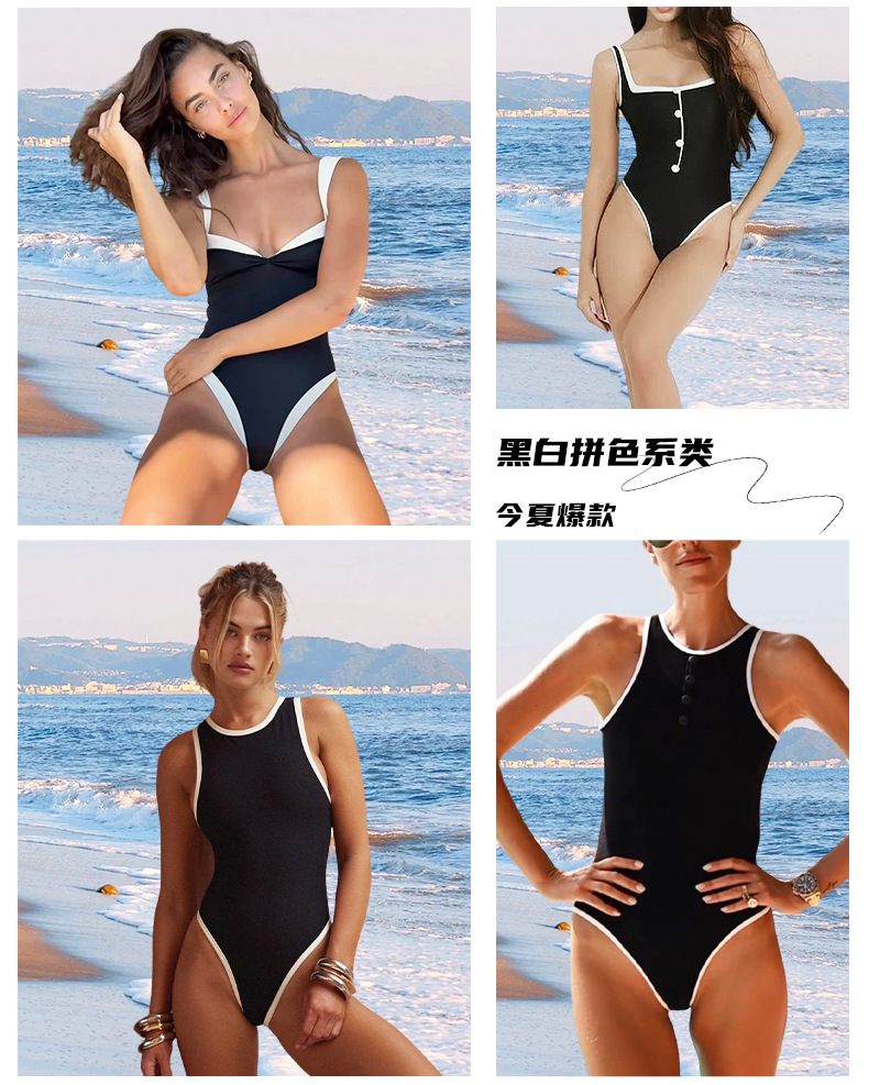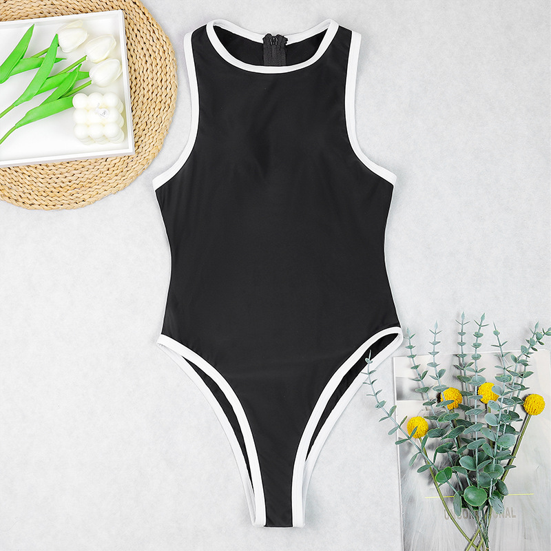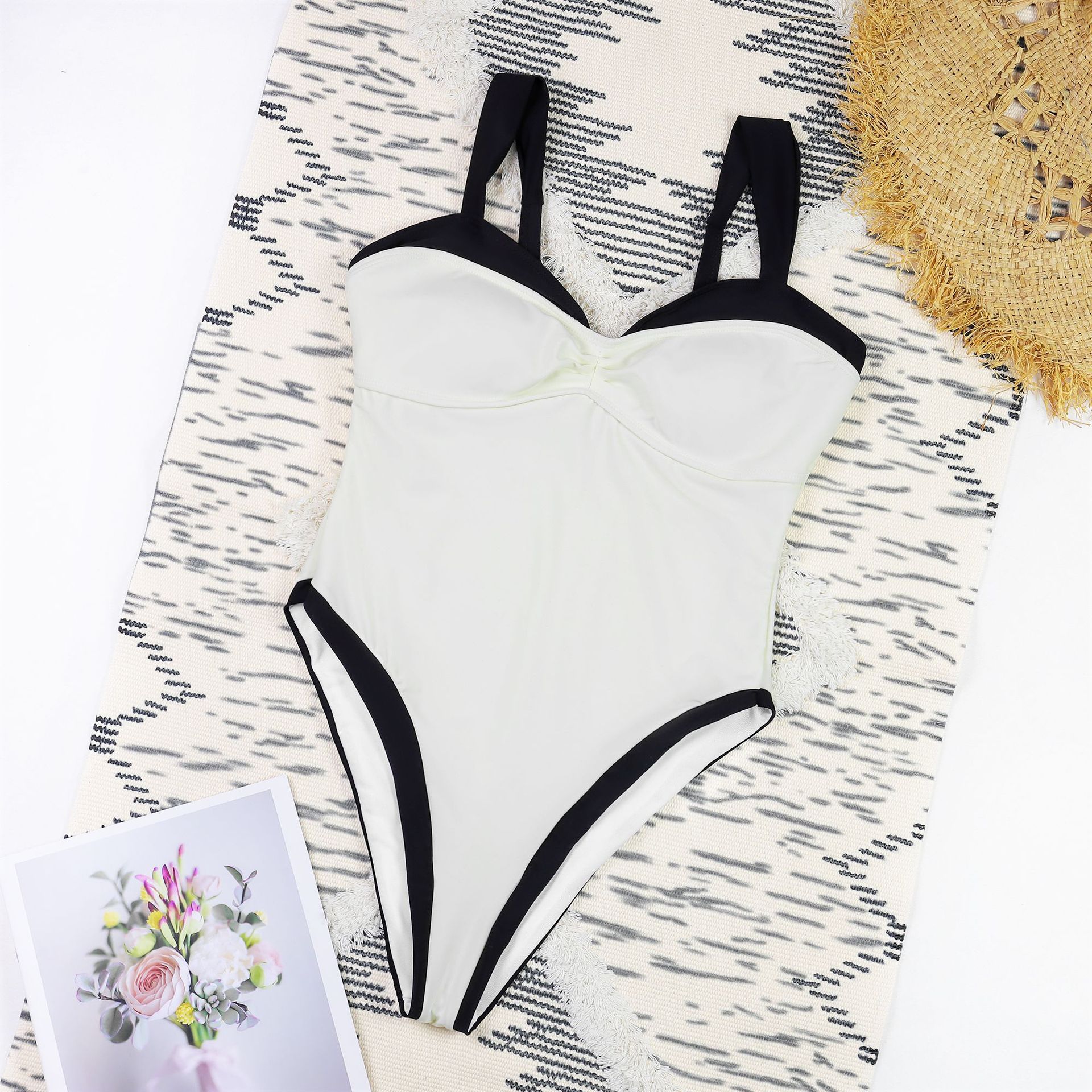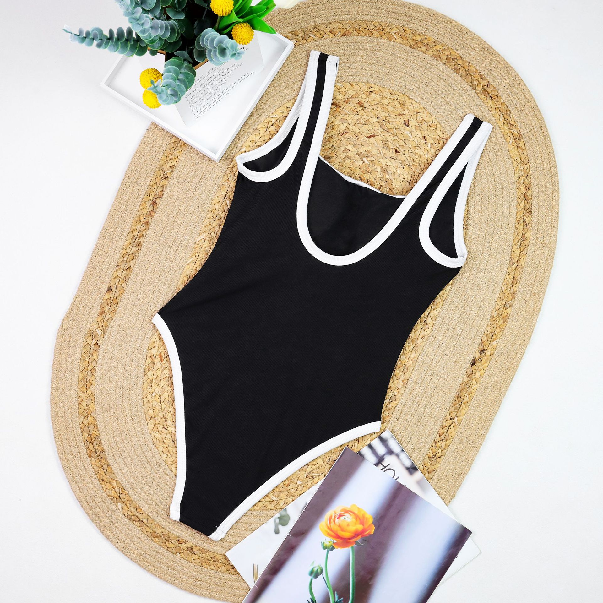 유럽과 미국의 플러스 사이즈 수영복 여성 대외 무역 인기 흑백 스플 라이스 원피스 수영복 섹시한 크로스 보드 백리스 비키니 수영복