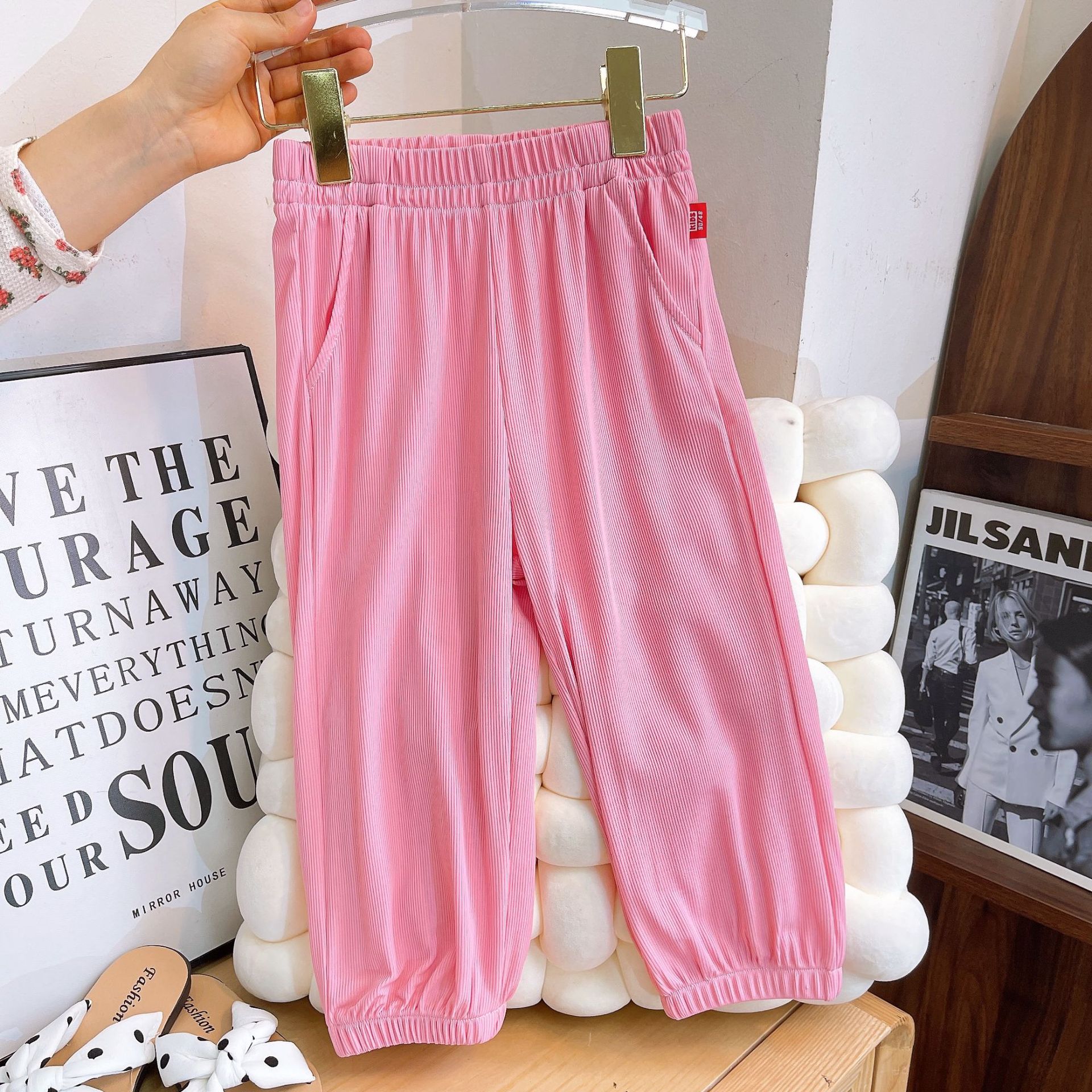 어린이 아이스 실크 안티 모기 바지 소년과 소녀 블루머스 아기의 여름 착용 홈 느슨한 파자마 바지 여름 얇은 바지스토어 가기