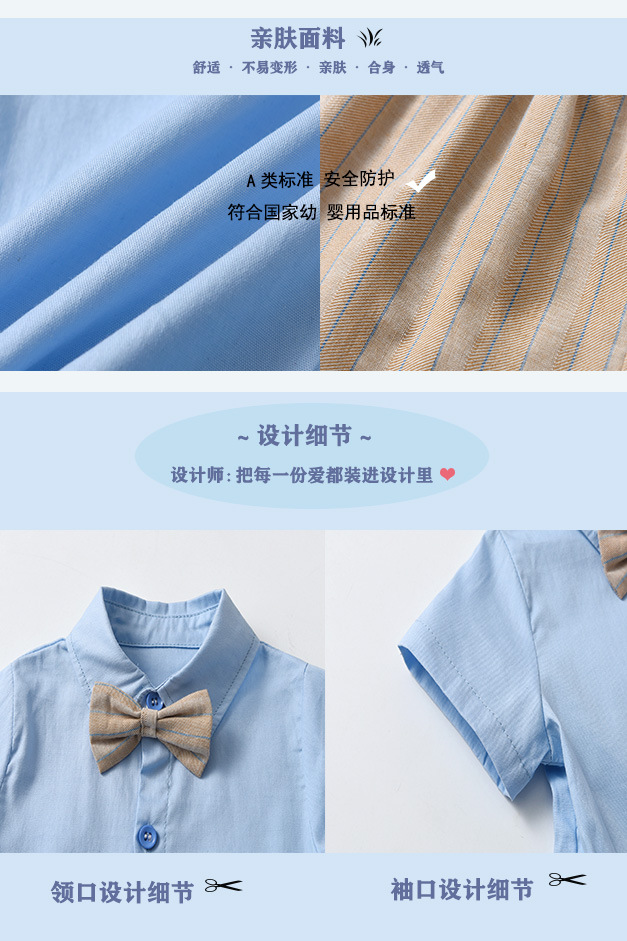 남자 아기 여름 반팔 스트랩 세트 아기 신사 셔츠 원피스 남자 어린이 잘 생긴 여름 투피스 세트스토어 가기