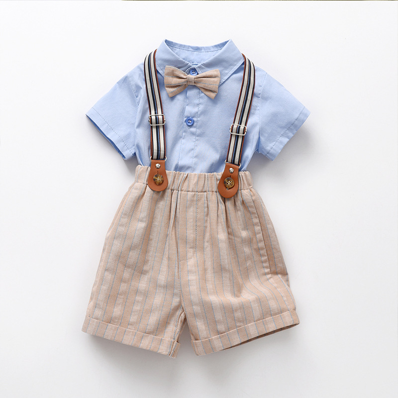 남자 아기 여름 반팔 스트랩 세트 아기 신사 셔츠 원피스 남자 어린이 잘 생긴 여름 투피스 세트