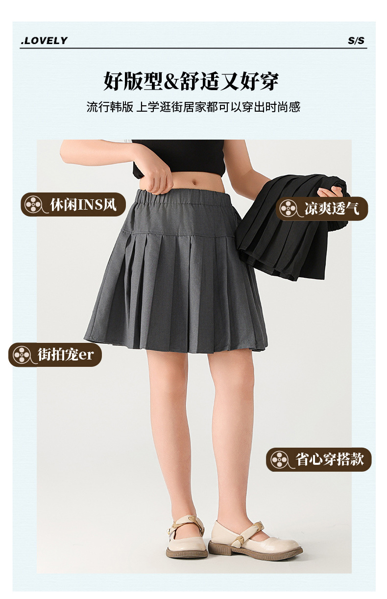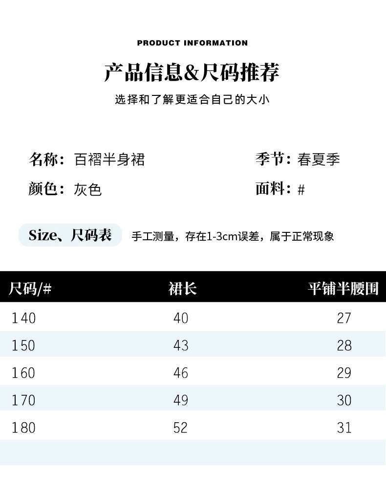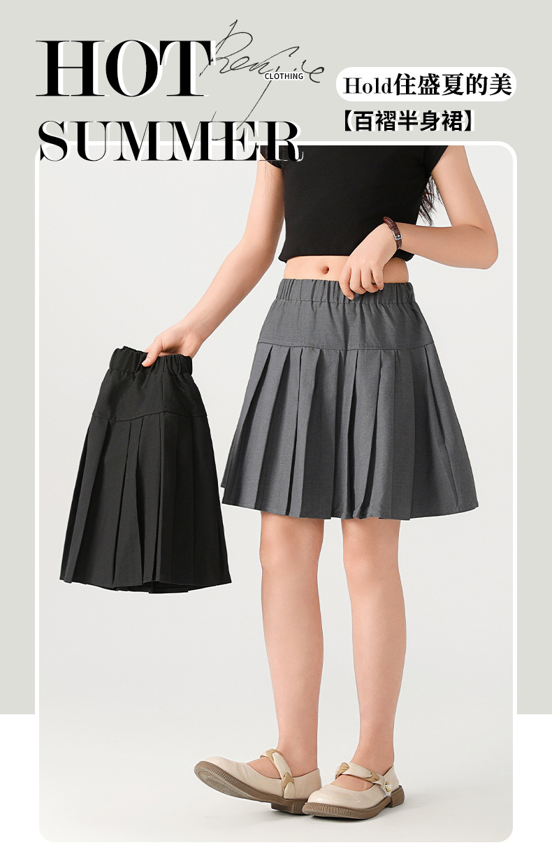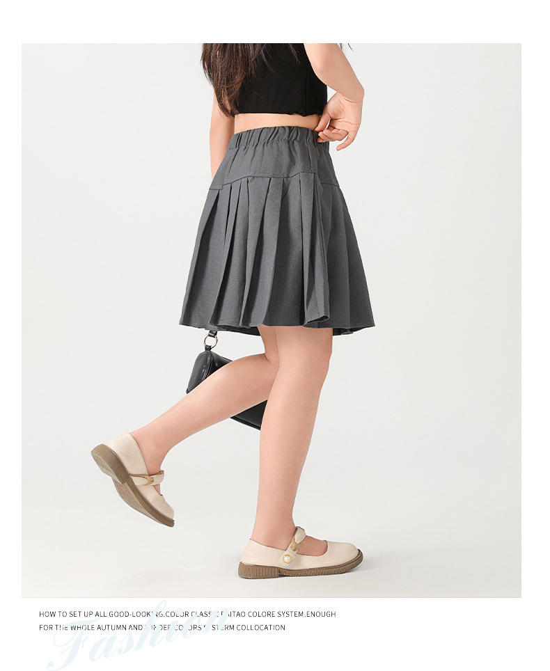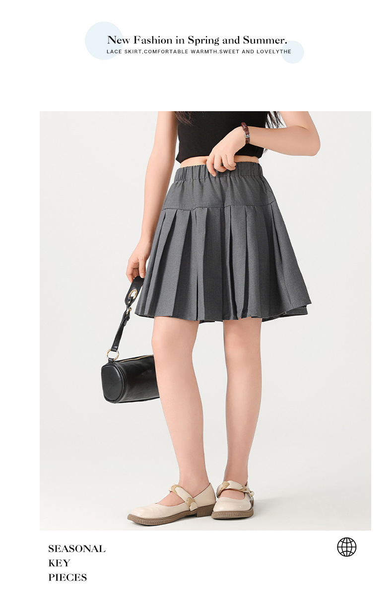 소녀의 주름 치마 플러스 사이즈 여름 대학 스타일 스커트 소녀의 회색 스커트 세트 절반 길이의 큰 소년의 봄과 가을 패션스토어 가기