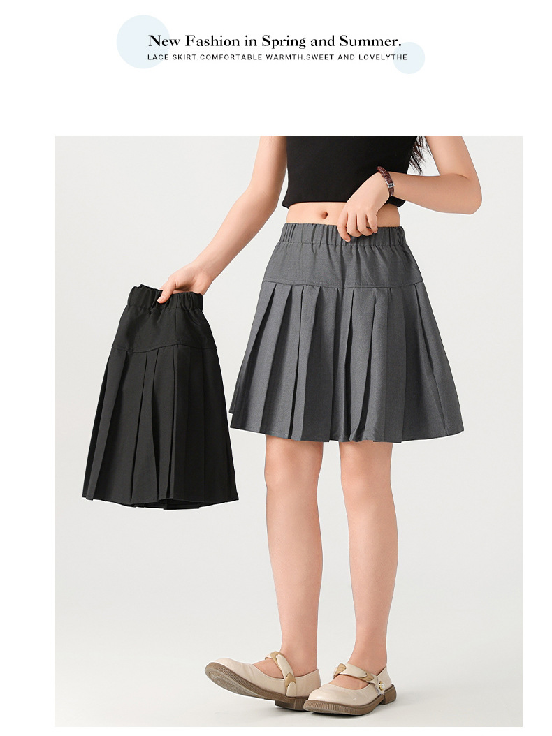 소녀의 주름 치마 플러스 사이즈 여름 대학 스타일 스커트 소녀의 회색 스커트 세트 절반 길이의 큰 소년의 봄과 가을 패션