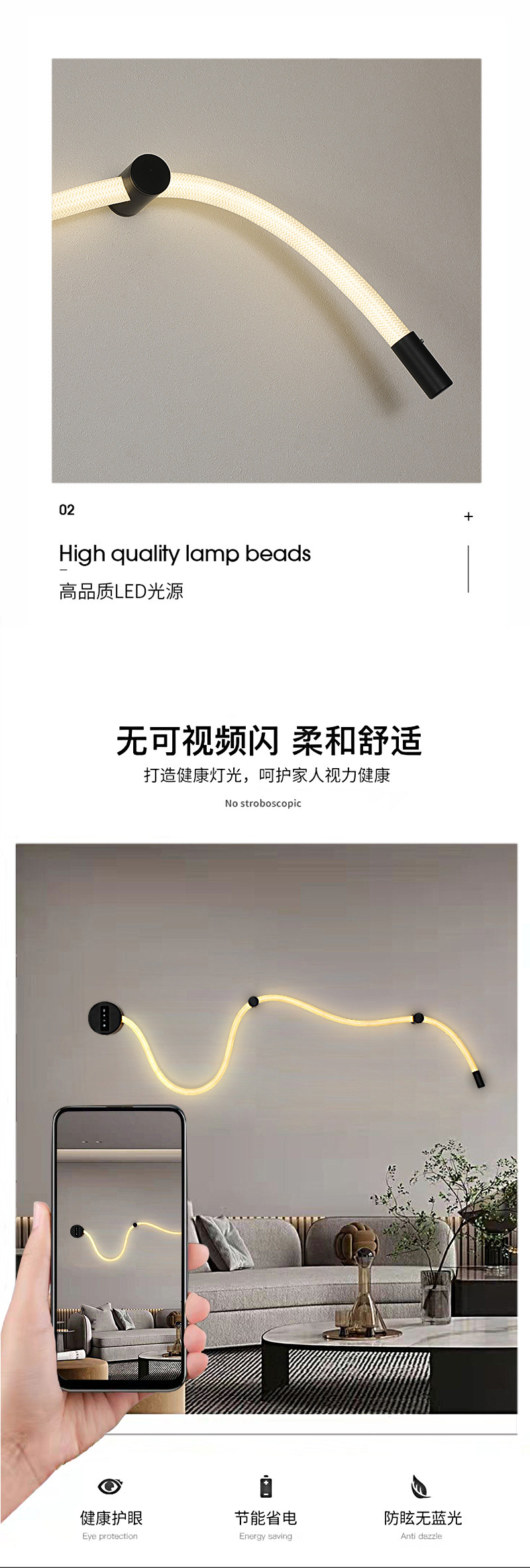 현대 스마트 간단한 거실 빛 럭셔리 실리콘 벽 램프 북유럽 창조적 인 간단한 벽 그림 벽 램프