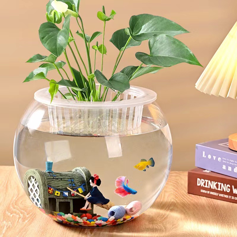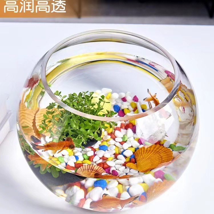 원형 유리 어항 금붕어 거북이 수조 대형 두꺼운 투명 수경재배 녹색 식물 수조 폭발적인 수족관